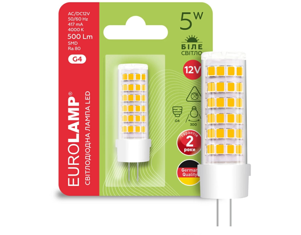 LED-G4-0540(12) - світлодіодна капсульна лампа від EUROLAMP призначена для декоративного світлового оформлення, у вбудованих світильниках для стель, гнучких системах освітлення, у світильниках з кришталевими стразами, а також застосовуються в меблевих світильниках. Прекрасно підходить для повноцінного освітлення будинку і зможе втілити в життя будь-які дизайнерські рішення. Не тільки легко замінить застарілі і часто навіть небезпечні галогенні лампи, але і наповнить інтер'єр насиченим і якісним світлом. EUROLAMP LED Лампа G4 капсульна 5W 4000K 12V призначена для роботи виключно в низьковольтних електромережах 12V. Не підключайте до мережі 220V! Ця характеристика є перевагою цієї моделі та дозволяє їй працювати від 12V акумуляторної батареї (у тому числі від машинного акумулятора), а також від сонячних панелей, при аварійних відключеннях електроенергії! |