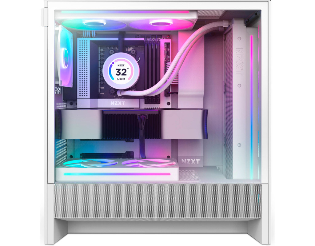 | Корпус для ПК NZXT H5 Flow RGB Compact All White (CC-H52FW-R1) — це сучасне творіння, що гармонійно поєднує стильний дизайн і високі технології, створюючи неперевершений фокус для вашої ігрової станції. Цей геймерський корпус заслуговує на особливу увагу завдяки своєму естетичному вигляду і продуманій конструкції, яка відповідає найвибагливішим вимогам сучасних користувачів. Розроблений для тих, хто цінує якість і продуктивність, NZXT H5 Flow RGB може похвалитися типорозміром Miditower, який підходить для різних конфігурацій, включаючи ATX, E-ATX, Mini-ITX і Micro-ATX материнські плати. Завдяки цій універсальності ви зможете без проблем адаптувати корпус під ваші потреби, підтримуючи встановлення довгих відеокарт до 410 мм та процесорних кулерів до 170 мм. Одним із найзначніших переваг є оптимізована система охолодження, що забезпечується встановленими чотирма 120 мм вентиляторами з RGB підсвічуванням. Перфорований кожух блоку живлення і сітчасті панелі створюють відмінну вентиляцію, а установка додаткових вентиляторів (верхні — 2x12/14 см, нижні — 2x12 см) підсилює цей ефект. Для тих, хто надає перевагу рідинному охолодженню, корпус підтримує радіатори до 360 мм спереду і 240 мм зверху, що дозволяє максимально знизити температуру навіть під великими навантаженнями. Дизайн виконаний у стильному білому кольорі і вдало доповнений підсвічуванням на передній панелі, яке разом з вікном на бічній панелі додає елегантності вашій системі. Це створює атмосферу занурення в гру, підкреслюючи індивідуальність та стиль вашої установки. Особливу увагу приділено ергономічності і функціональності. Місця для зовнішніх роз'ємів — 1 x Audio, 1 x USB 3.2, 1 x USB 3.2 type C — роблять підключення периферійних пристроїв простим і швидким. Практичне розташування блоку живлення у нижній частині корпусу покращує балансування системи, забезпечуючи легкий доступ і оптимальне розміщення в межах 200 мм. Турбота про деталі, зокрема наявність внутрішніх відсіків для накопичувачів (1 x 3.5" і 2 x 2.5"), забезпечує збереження всієї системи в чистоті та організованості. З вагою у 7.63 кг, корпус стійкий та довговічний, здатний витримати багаторічні навантаження, залишаючись вірним помічником у вашій ігровій кар'єрі. NZXT H5 Flow RGB Compact All White — це ідеальний вибір для ентузіастів, які цінують передові технології, стильний дизайн і виняткову функціональність в одному продукті. Його продумані рішення гарантують, що кожен геймер знайде в цій моделі те, що відповідатиме його потребам і перевершить всі очікування. |
