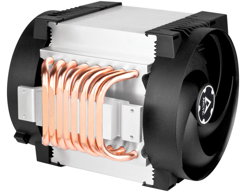 Arctic Freezer 4U-M Rev. 2 — компактний процесорний кулер з двома 120-мм вентиляторами. Призначений для процесорів AMD і Intel. Виготовлений з алюмінію та забезпечує стабільну та ефективну роботу процесора без перегрівів. Має 8 мідних теплових трубок, які допомагають рівномірно розподіляти тепло по всій площі радіатора. Це дозволяє вентиляторам більш ефективно охолоджувати систему, оскільки відведення тепла охоплюватиме більшу площу. Також трубки сприятимуть зниженню загальної температури процесора та запобігатимуть перегріву, навіть за умов інтенсивного навантаження. Вентилятори мають регулятор обертів та працюють зі швидкістю від 400 до 2300 обертів за хвилину. Підключається пристрій за допомогою конектора 4 Pin. Особливості: - подвійний кульковий підшипник; |