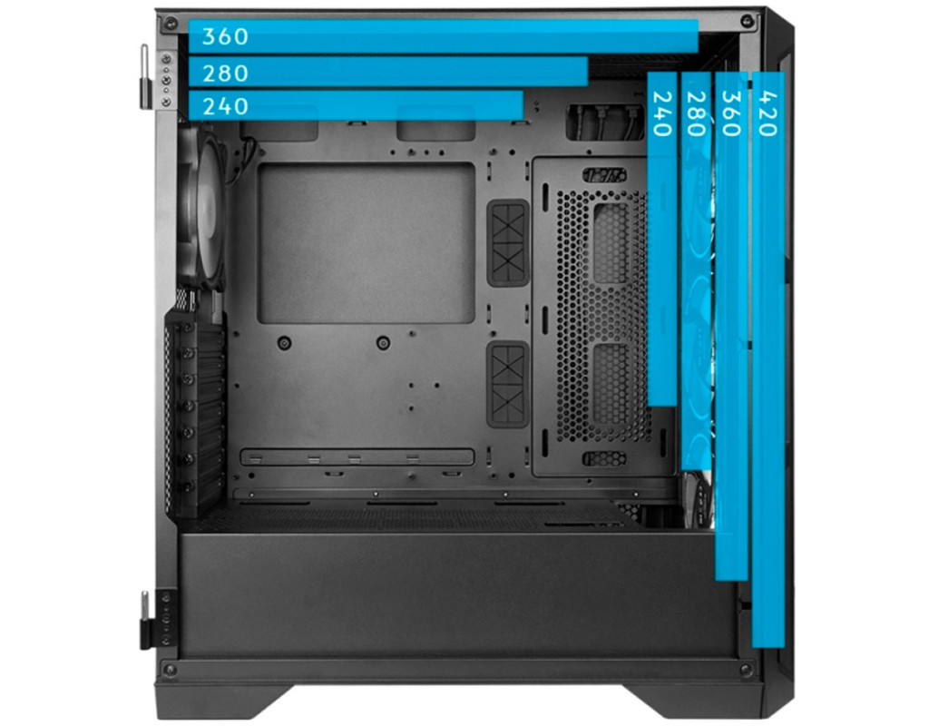 | Корпус для ПК Chieftec APEX LUMO (GA-01B-L-OP) - це відмінний вибір для геймерів, які прагнуть поєднати продуктивність із стильним дизайном, а також для тих, хто цінує високу якість збірки. Цей геймерський корпус втілює сучасні технологічні рішення, які дозволять вашій системі працювати бездоганно навіть під найбільшими навантаженнями. Поєднуючи в собі функціональність і естетику, Chieftec APEX LUMO має типорозмір Miditower, що дозволяє використовувати материнські плати таких стандартів, як Micro-ATX, Mini-ITX, ATX та E-ATX. Це забезпечує максимальну гнучкість у виборі апаратного забезпечення та відкриває можливості для створення найпотужніших обчислювальних платформ. Система охолодження Chieftec APEX LUMO - це відзначені переваги. Чотири попередньо встановлені вентилятори розміром 140 мм - три на передній та один на задній панелі - гарантують відмінне охолодження навіть під час тривалих ігрових сесій. Для любителів рідинного охолодження корпус підтримує встановлення великих радіаторів на передній та верхній панелях. Можливість додавання вентиляторів на верхній, бічній та нижній панелях дозволяє досягти максимального охолодження всієї системи. Особлива увага приділена зручності використання. Корпус дозволяє встановлення графічних карт довжиною до 400 мм, що робить його ідеальним для найбільш потужних сучасних відеокарт. Максимальна висота процесорного кулера до 175 мм і можливість встановлення блоку живлення довжиною до 220 мм роблять корпус сумісним з широким спектром апаратури. Портова панель на передній частині корпусу включає USB 3.2 Type-C та два USB 3.0, що дозволяє легко підключати зовнішні пристрої і забезпечувати швидкий обмін даними. Особливості дизайну, такі як вікно на бічній панелі з загартованого скла й ARGB підсвічування на задній та передній панелях, додають естетки вашій системі. Можливість управління підсвічуванням і швидкістю вентиляторів за допомогою вбудованого хаба дозволяє налаштувати атмосферу вашого робочого простору на ваш смак. Внутрішня організація корпусу передбачає два 3.5" та два 2.5" відсіки для організації зберігання даних, що забезпечує безпеку і зручність у користуванні. Вбудовані пилові фільтри допомагають утримувати внутрішній простір у чистоті, що забезпечує стабільну роботу всіх компонентів системи і легкість в обслуговуванні. Загальна естетика та функціональність Chieftec APEX LUMO роблять його відмінним вибором для тих, хто бажає виділитися та підкреслити свій стиль. Завдяки вишуканій чорній кольоровій гамі з інтенсивним освітленням, цей корпус стане центром вашої робочої системи, допомагаючи створити високопродуктивну, ефективну й візуально привабливу установку, що обов'язково приверне увагу. |