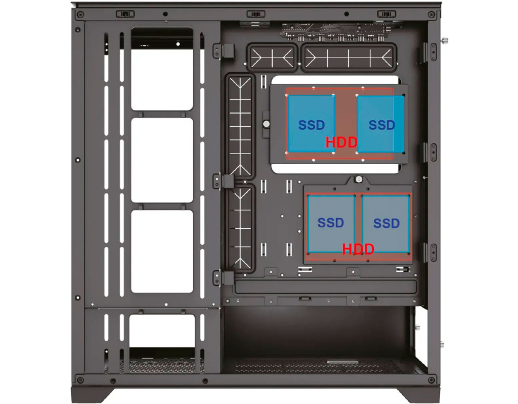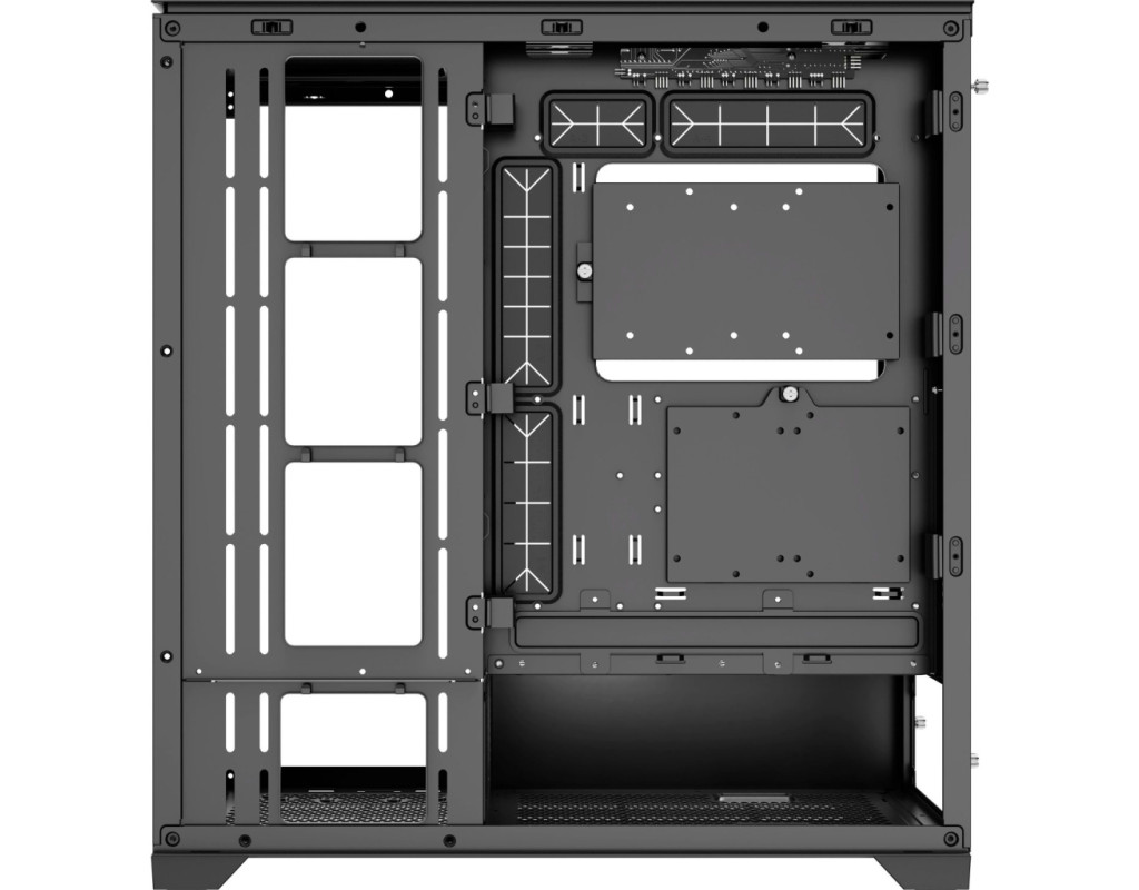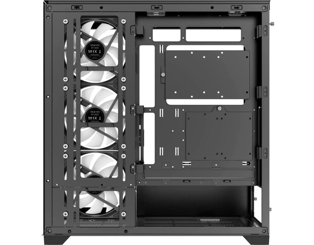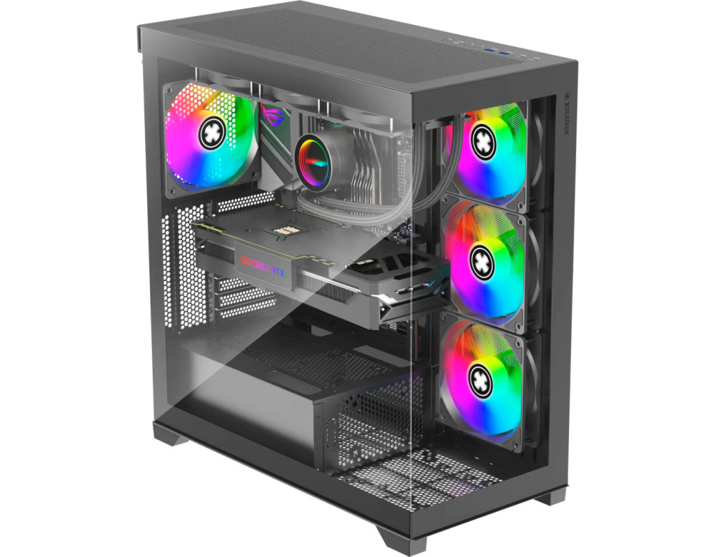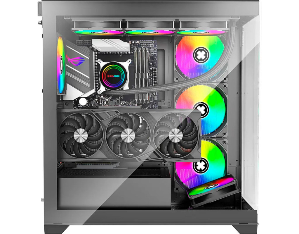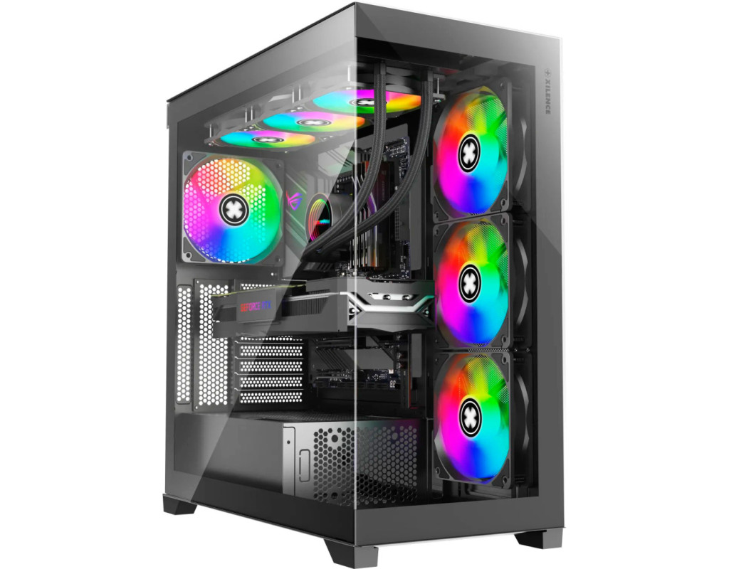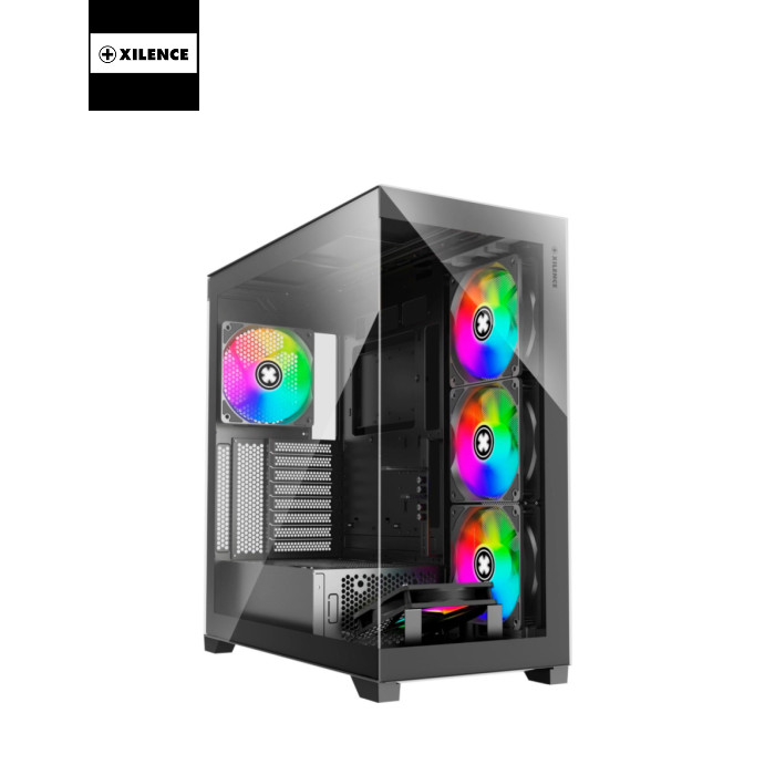 Корпус Xilence XILENT GLEAM ARGB X818.ARGB відмінно підійде для високопродуктивних ігрових систем. Він вирізняється сучасним динамічним дизайном та пропонує багато варіантів для побудови ефективної системи охолодження. У корпус встановлено чотири вентилятори – три збоку та один позаду, що забезпечує ефективне відведення тепла. Верхня сітчаста панель додатково покращує повітрообмін. Ваші ігри будуть ще більш захоплюючими разом з A-RGB підсвічуванням вентиляторів. Хаб для управління A-RGB підсвічуванням та швидкістю обертання вентиляторів дає можливість створити свій індивідуальний стиль та самостійно налаштувати баланс між продуктивністю корпусу та рівнем робочого шуму. Корпус Xilence XILENT GLEAM ARGB X818.ARGB підтримує встановлення графічних карт завдовжки до 455 мм та процесорних кулерів висотою до 185 мм. У корпус також можна додатково встановити систем водяного охолодження з радіаторами діаметром 420, 360, 280 або 240 мм у верхній та боковій частинах корпусу. Здійснюйте швидкий обмін даними з підключеними пристроями – корпус оснащений портами USB Type-C та двома USB Type-А, які розташовані у легкому доступі. Корпус Xilence XILENT GLEAM ARGB X818.ARGB надзвичайно простий в експлуатації. За материнською платою передбачено до 36 мм вільного простору. Це робить підключення кабелів зручним. Встановлення дисків HDD/ODD та відеокарти здійснюється без інструментів. Розташовані у верхній та нижній частинах корпусу пилові фільтри легко знімаються і очищаються. Виготовлені із загартованого скла бокова та передня панелі відкривають чудовий огляд встановленої системи. |