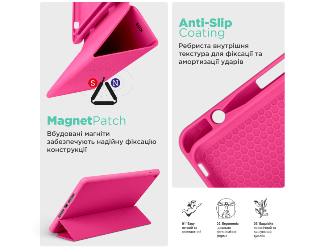 Тип - обкладинка, Сумісність з моделями - Xiaomi Redmi Pad Pro, Xiaomi Poco Pad, Спосіб кріплення - обкладинка, спосіб закриття - магніт, Матеріал - поліуретан, рожеве золото