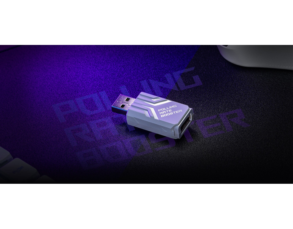 Відчуйте надзвичайну плавність керування курсором завдяки ROG Polling Rate Booster - новому ексклюзивному аксесуару ROG, який забезпечує справжню частоту бездротового опитування до 8000 Гц у разі використання із сумісними мишами та клавіатурами ROG.