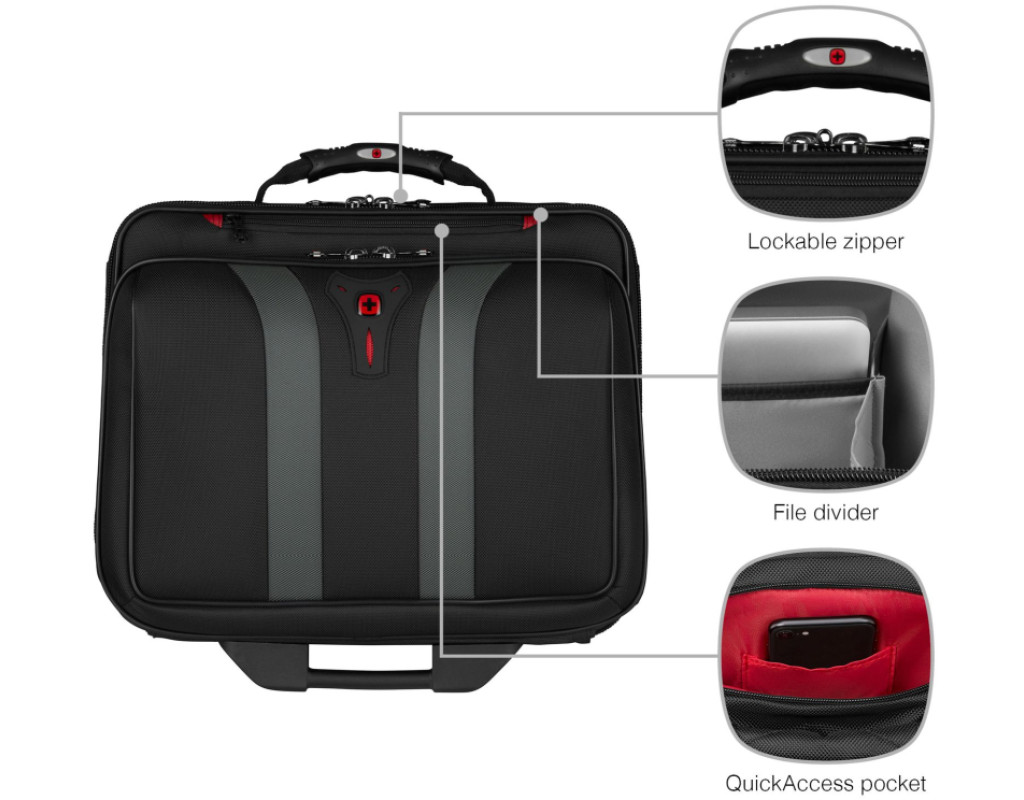 | Сумка для ноутбука Wenger 16" Granada, Wheeled Case, Black (600659) — це справжнє втілення якості та комфорту, пристосоване для ділових людей, які часто подорожують. Зроблена з міцного поліестеру, вона забезпечує довговічність та захист ваших речей. Чорний колір додає елегантності, а натхненний класичними стилями дизайн підтверджує це. Сумка обладнана двома основними відсіками, що дозволяють розмістити ноутбук з рекомендованим розміром до 14". Завдяки цим містким відділенням, ви легко зможете організувати свій простір, включаючи органайзер для необхідних дрібниць та роздільник для файлів, щоб мати все під рукою. Одна з основних унікальних функцій — це телескопічна ручка-візок, що допомагає швидко трансформувати сумку у зручну валізу. Вона оснащена колесами легкого ковзання, що дозволяють плавно переміщати сумку навіть у затіснених місцях чи на поворотах. З вагою всього 3.66 кг, ця сумка є неймовірно практичною і не обтяжує вас в дорозі. Wenger 16" Granada — це безперечно вдале поєднання функціональності, стилю та ергономічності, що задовольняє всі вимоги сучасної ділової людини. |