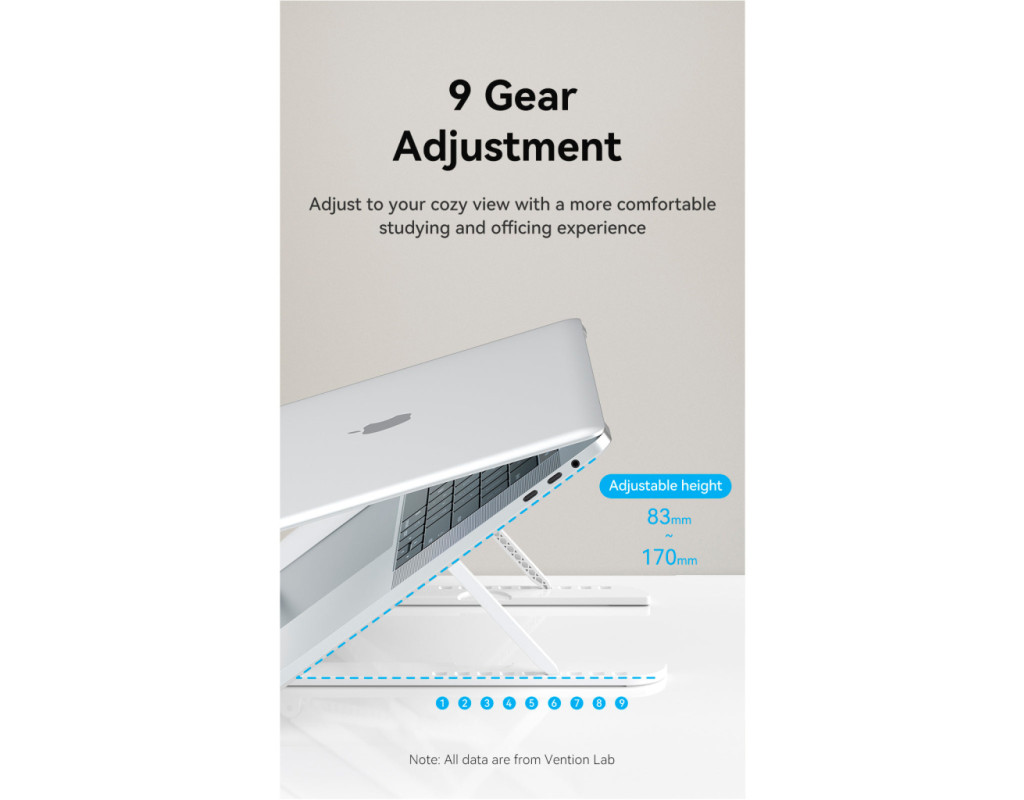 Підставка Vention Laptop X-type Stand ABS сумісна з планшетами та ноутбуками з діагоналлю до 17.3 дюймів. Виготовлена з ABS розтяжна конструкція X-типу забезпечує надійну підтримку для вашого гаджета та ефективне розсіювання тепла. Дев’ять рівнів регулювання висоти (83 мм до 170 мм) дозволяють легко адаптуватись до різних умов. Конструкція, яка складається, та низька вага — лише 145 грами, роблять підставку зручною для зберігання та транспортування. Підставка Vention Laptop X-type Stand ABS оснащена опорами для ноутбука, які допоможуть надійно його зафіксувати. Силіконові накладки запобігатимуть ковзанню ноутбука та його пошкодженню. |