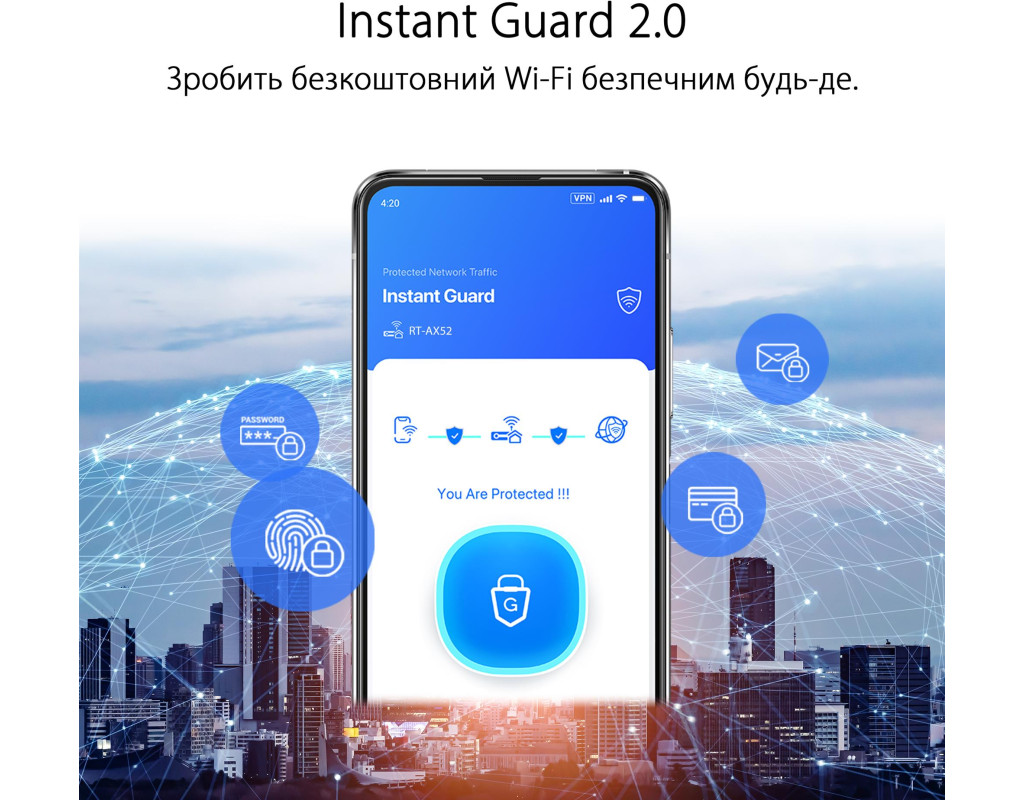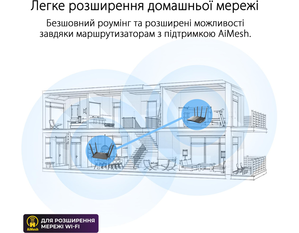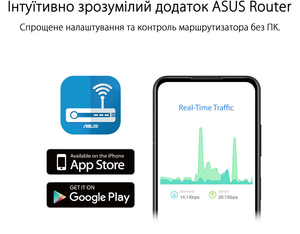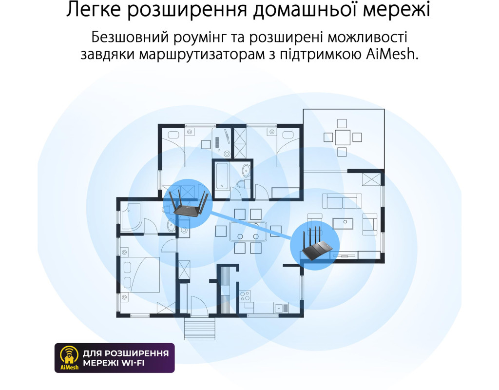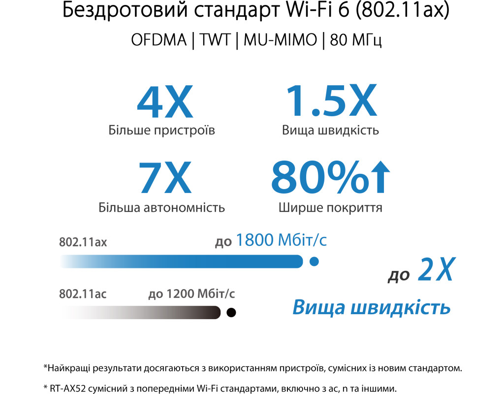 | ASUS RT-AX52: дводіапазонний маршрутизатор для розширення мережі Wi-Fi, стандарт Wi-Fi 6 (клас AX1800), функція Instant Guard, інструменти батьківського контролю, функції VPN, сумісність з AiMesh