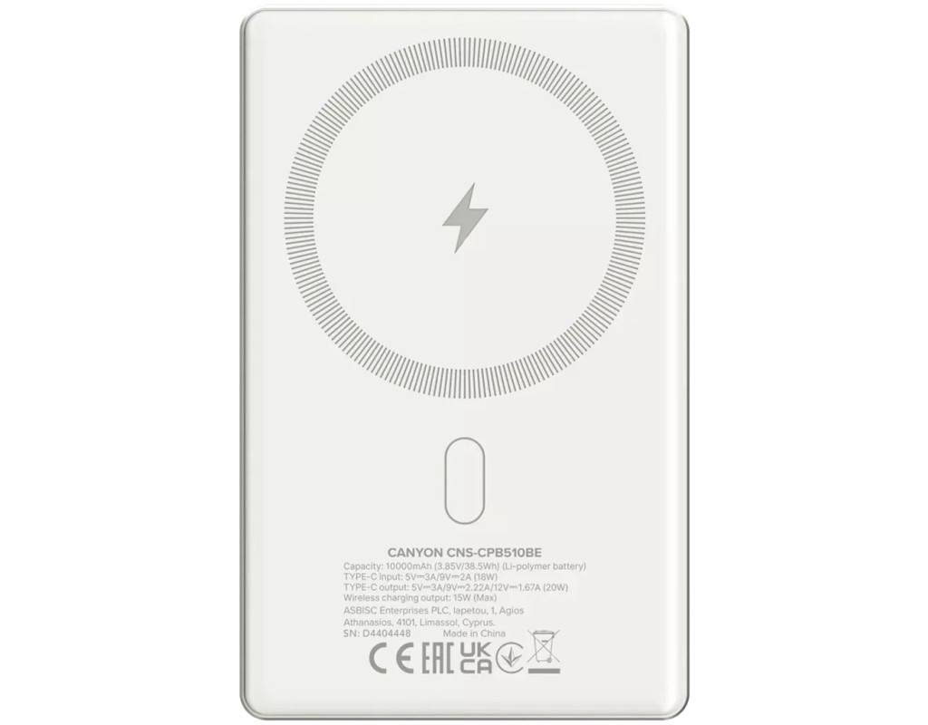 Вам більше ніколи не доведеться мати незручності через низький заряд батареї! OnPower 510 створений, щоб стати бездоганним доповненням до вашого життя та забезпечувати високу продуктивність у витонченому та портативному корпусі. Завдяки вражаючій ємності 10 000 мА*г цей ультратонкий акумулятор забезпечує всю необхідну енергію, щоб ваші пристрої були зарядженими та готовими до будь-яких завдань. Можливість бездротової зарядки пристрою потужністю 15 Вт максимально спрощує підключення: просто покладіть пристрій на планшет, а OnPower 510 зробить все інше. Віддаєте перевагу дротовій зарядці? У цьому випадку вихідна потужність 20 Вт типу C забезпечує надзвичайно високу швидкість заряджання ваших телефонів, планшетів тощо, а вхід типу C забезпечує швидке й ефективне перезаряджання акумулятора. Виготовлений із високоякісного алюмінієвого сплаву та вогнестійких матеріалів ABS+PC, цей зарядний пристрій настільки ж міцний, як і стильний. Компактний і легкий, ви можете легко помістити в сумку або кишеню.