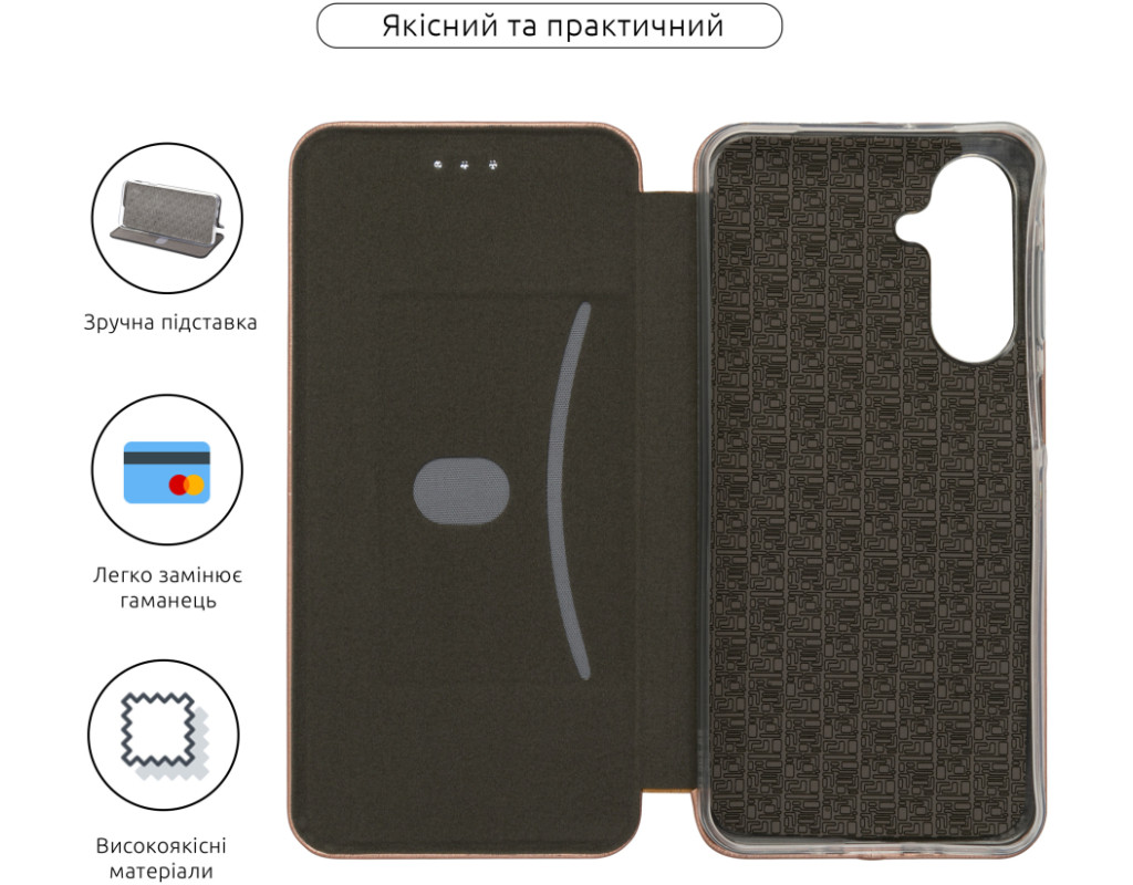 сумісність з моделями - Samsung Galaxy A26, Тип чохла для телефону - книжка, Призначення - модельний, Колір - рожеве золото