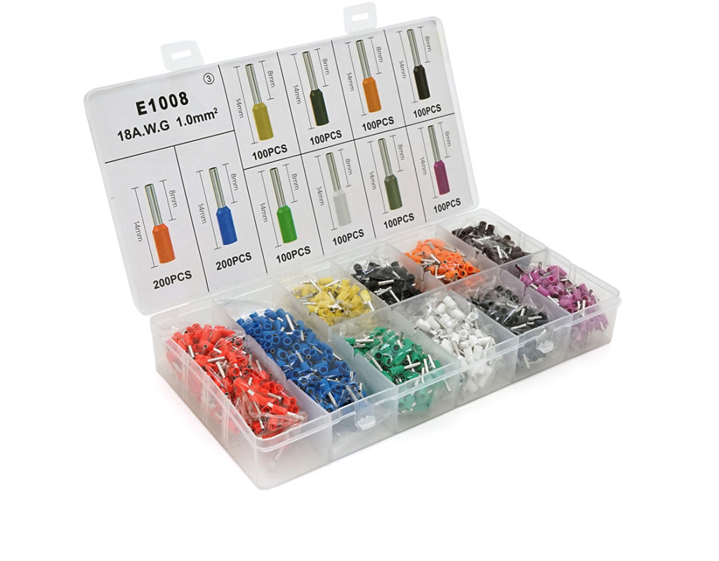 Набір клем / наконечників 1200шт E1008 (R-200, B-200, Y-100, Bl-100, O-100, Br-100, G-100, W-100, Gr-100, V-100) в боксі