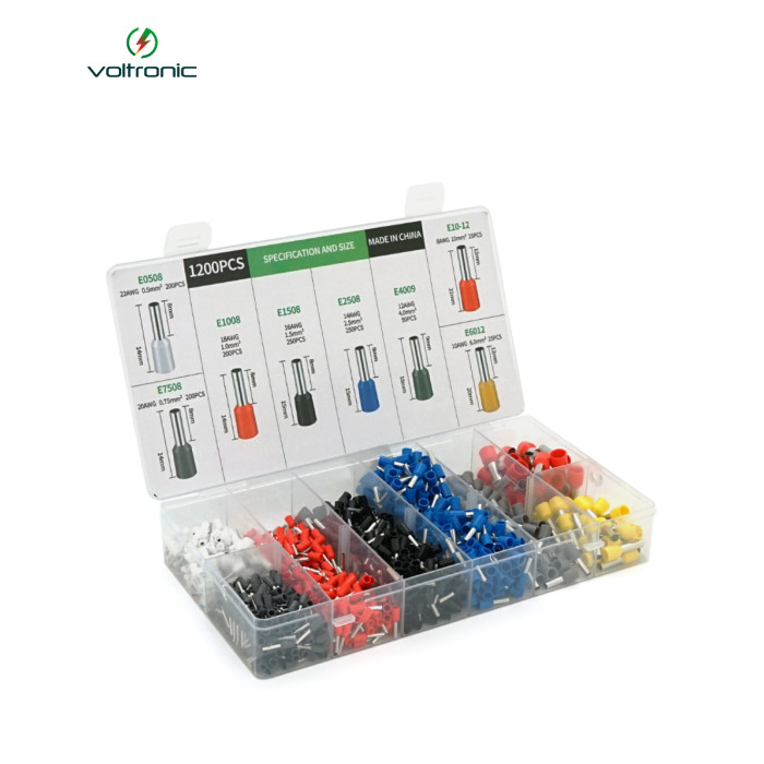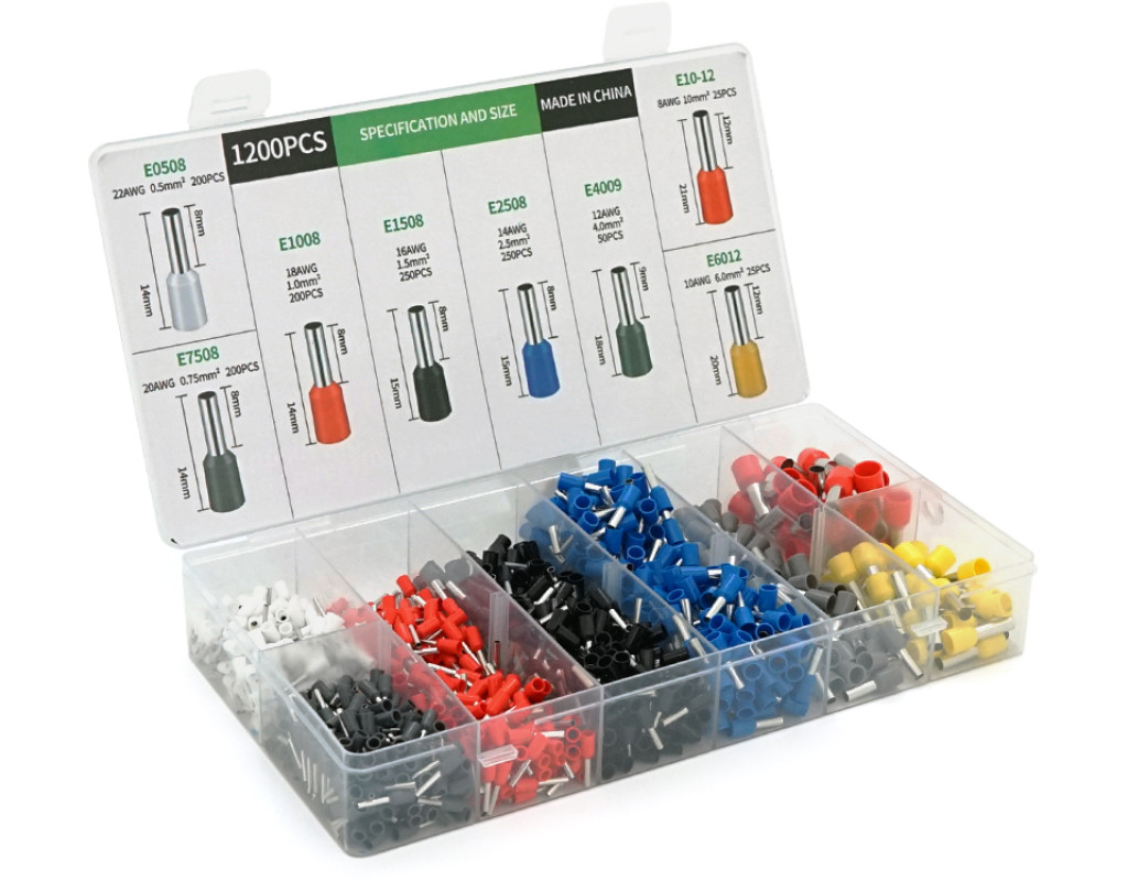 Набір клем / наконечників 1200шт(E0508w-200 E2508b-250,E1008r-200,E1508bl-250,E4009gr-50,E7508gr-200,E6012y-25. E1012r-25)у боксі