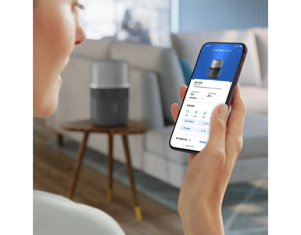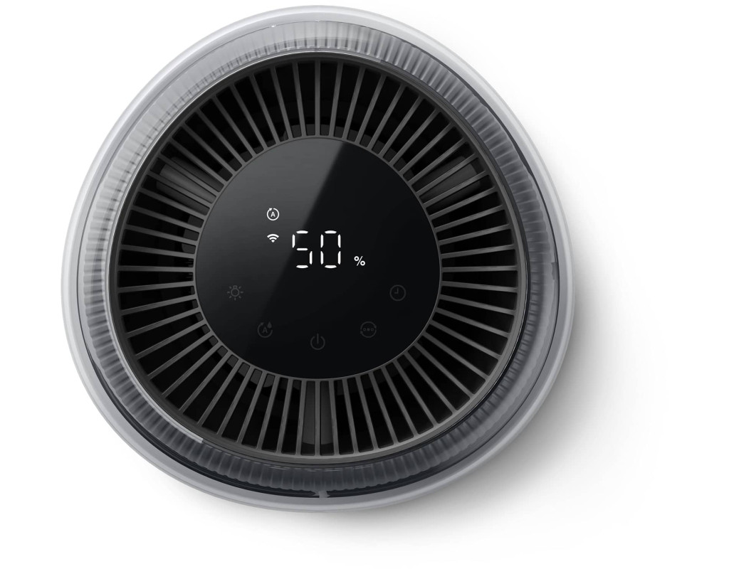 Вдихніть різницю Гігієнічне зволоження повітря Ефективно підтримує оптимальну вологість Гігієнічне зволоження з NanoCloud Комфортна атмосфера під настрій Легке у використанні розумне управління Допомагає боротися із наслідками сухого повітря Збалансований рівень вологості допомагає покращити якість повітря у приміщенні. Цей зволожувач повітря покликаний усунути дискомфорт, спричинений сухим повітрям, наприклад сухість шкіри, губ, носових ходів та очей, а також подразнення горла, закладеність носа та статичну електрику. Він також допомагає захищати кімнатні рослини від пересихання, сприяючи здоровішому середовищу будинку. Ефективно працює у приміщеннях площею до 56 м2 зі швидкістю 400 мл/год. Три рівні швидкості вентилятора та автоматичні налаштування забезпечують відповідну ефективність та комфорт. Безперервне зволоження до 37 годин Дихайте комфортно з мінімумом доливань. Резервуар для води XL ємністю 4,5 л забезпечує до 37 годин безперервного використання для вашої зручності. Насолоджуйтесь комфортною атмосферою з меншою кількістю перерв. На 99% менше бактерій: ідеальне рішення для дитячих кімнат Ніяка інша технологія, крім NanoCloud від Philips, не генерує чистішу водяну пару. До надтонкого туману дуже важко прикріпитись бактеріям. Перевага цієї технології – зволоження повітря та поширення на 99% менше бактерій, ніж звичайні ультразвукові зволожувачі повітря, що робить зволожувач повітря ідеальним вибором для дитячих кімнат та безпечним для використання з водопровідною водою. Не залишає білих розлучень та мокрих плям на підлозі та меблях. Невидимий туман NanoCloud не утворює водного пилу і не залишить вологі плями. Великі краплі, що вивільняються ультразвуковими зволожувачами, можуть надмірно зволожити довкілля та містити мінерали, що залишають білий осад на поверхнях. Частинки NanoCloud занадто малі, щоб переносити мінерали, що ефективно запобігає утворенню плям Режим QuickDry для швидшого висихання фільтра (очікується видача патенту) Не залишайте мікробам жодного шансу та запобігайте накопиченню вологи за допомогою інтелектуального режиму QuickDry (очікується видача патенту). Додайте власні ефірні олії та насолоджуйтесь заспокійливою ароматерапією Отримайте всі переваги ароматерапії за допомогою додаткової функції ароматизації нашого зволожувача повітря. Додавання до туману улюблених ефірних олій дозволить покращити загальне самопочуття. Додайте ізюм кімнаті за допомогою кольорового навколишнього освітлення Тепле приємне підсвічування або яскраве світло, що бадьорить, — створюйте настрій, що відповідає будь-якому моменту. Режим сну, тиха робота (макс. 12 дБ(A)) та нічник Зробіть нічний сон комфортним та прокидайтеся бадьорим, створивши оптимальний рівень вологості. Режим сну забезпечує тиху, але ефективну роботу пристрою вночі. Використовуйте нічник для створення заспокійливої атмосфери перед сном. Отримайте доступ до інтелектуальних функцій Air+. Ви матимете повний контроль над цим інтелектуальним зволожувачем повітря, незалежно від вашого місця перебування. Air+ забезпечує інтелектуальний досвід регулювання параметрів вологості, вибору оптимального освітлення та програмування таймерів та графіків. У будь-якому місці та у будь-який час. Легке заповнення: резервуар з верхнім та бічним отвором для заповнення Легко заповню