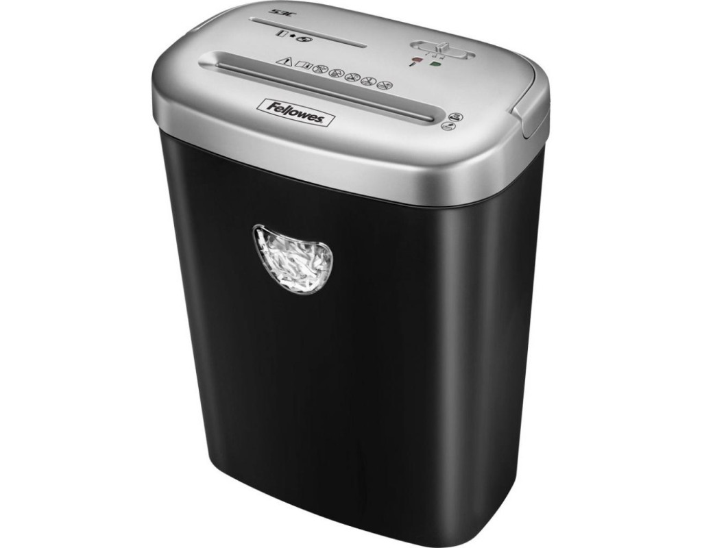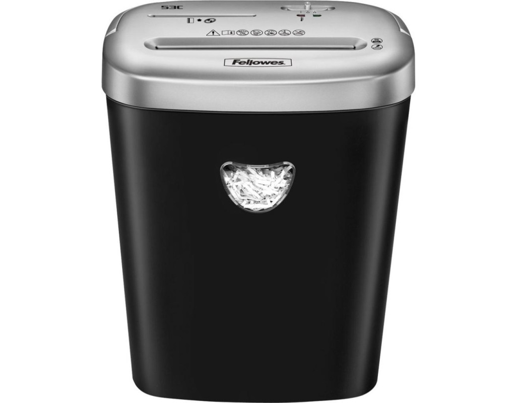 Знищувач документів Fellowes 53C (f.U4653101) - компактний, практичний і тихий знищувач для персонального використання в малому офісі. Ручка для перенесення, окремий слот для знищення CD/DVD і кредитних карт.