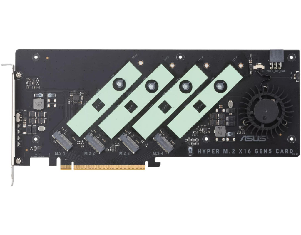 | ASUS Hyper M.2 X16 Gen5 - це високопродуктивна карта розширення, яка підтримує стандарт PCIe 5.0 і забезпечує швидкість передачі даних до 512 Гбіт/с. Оснащена чотирма слотами M.2 (Key M), що підтримують формати 2242/2260/2280/22110, карта оптимізована для PCIe M.2 накопичувачів. Інтегровані активний вентилятор і радіатор гарантують ефективне охолодження під час інтенсивної роботи. |
