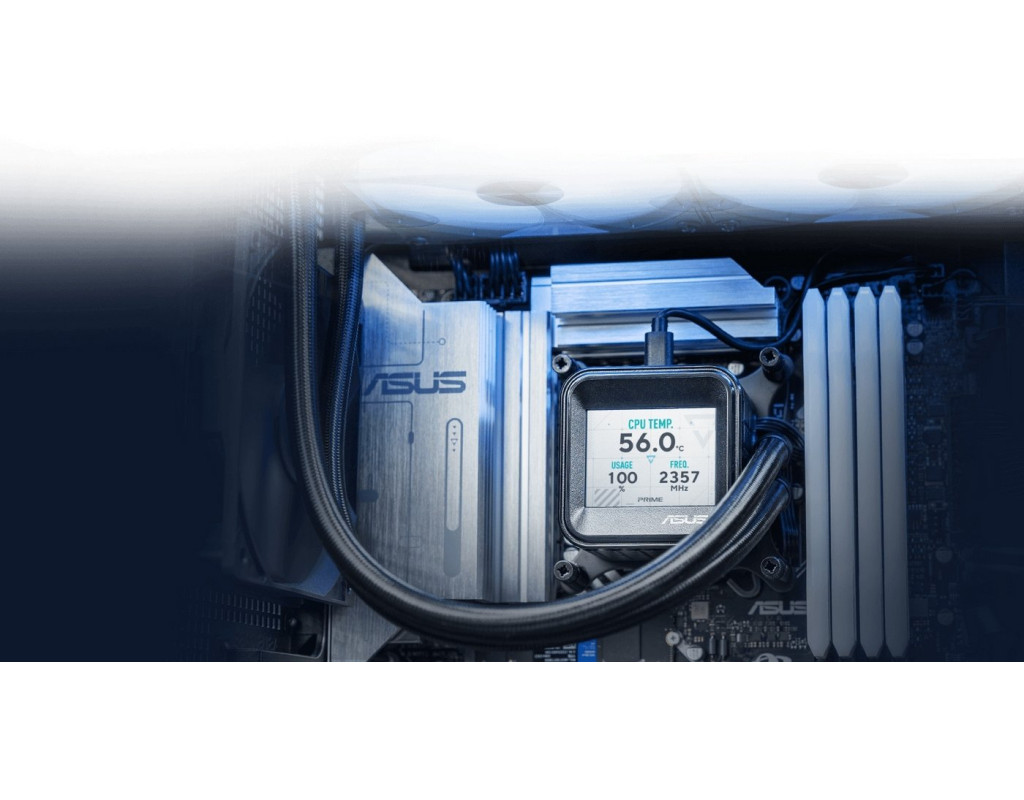Універсальний рідинний кулер Asus Prime LC ARGB LCD з чітким екраном, на якому відображається інформація про процесор і графічний процесор з різним фоном, високопродуктивна помпа Asetek з надійним двигуном і послідовним з'єднанням вентиляторів. Особливості: РК-екран для моніторингу роботи процесора та графічного процесора в режимі реального часу. Високопродуктивна помпа Asetek з міцним двигуном, що забезпечує надійне охолодження. З'єднані в ланцюжок вентилятори для статичного тиску та повітряного потоку. Розроблений, щоб ідеально доповнити естетику материнської плати Prime. Посилені трубки з гільзами для більшої довговічності. Охолодження з перспективою Кулер Prime LC 360 ARGB LCD поєднує в собі основні характеристики охолодження, 2,3-дюймовий РК-екран і простоту встановлення. Збалансована помпа Asetek допомагає забезпечити оптимальну продуктивність вашого процесора, а 2,3-дюймовий РК-дисплей дозволяє легко контролювати продуктивність процесора або графічного процесора. Крім того, попередньо встановлені послідовне з'єднання вентиляторів ARGB підвищують зручність збірки та управління кабелями. Високопродуктивний насос Asetek Нова помпа Asetek має підвищену теплову ефективність, щоб забезпечити оптимальну робочу температуру процесора навіть під час високих навантажень. 2,3-дюймовий РК-дисплей 2,3-дюймовий РК-дисплей може відображати апаратну інформацію як для центрального, так і для графічного процесора, включаючи температуру, частоту та використання. Це дозволяє користувачам легко переглядати важливі дані з одного погляду. Попередньо встановлені вентилятори ARGB з можливістю послідовного підключення Попередньо встановлені вентилятори ARGB з можливістю послідовного підключення на РК-дисплеї Prime LC 360 ARGB спрощують процес інсталяції. Підключивши кабель з двома роз'ємами, користувачі можуть з'єднати як освітлення ARGB, так і вентилятори, що спрощує прокладання кабелів. Вентилятори забезпечують чистий зовнішній вигляд, а також потужний і стабільний потік повітря, ще більше покращуючи можливості охолодження вашої системи. Широка сумісність Prime LC 360 ARGB LCD має 400-міліметрову трубку і сумісний з широким спектром платформ материнських плат Intel і AMD, що забезпечує широку підтримку процесорів і гнучкість збірки. |