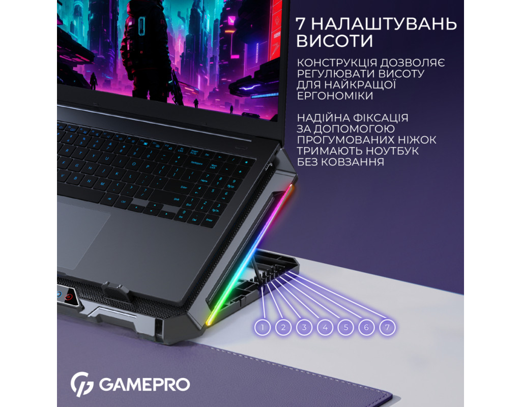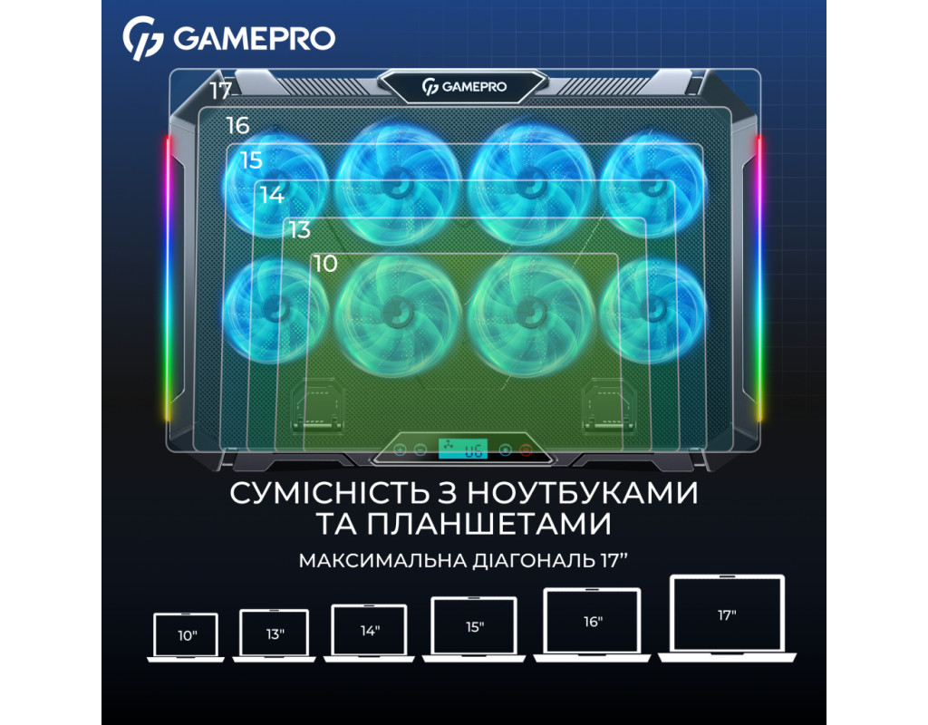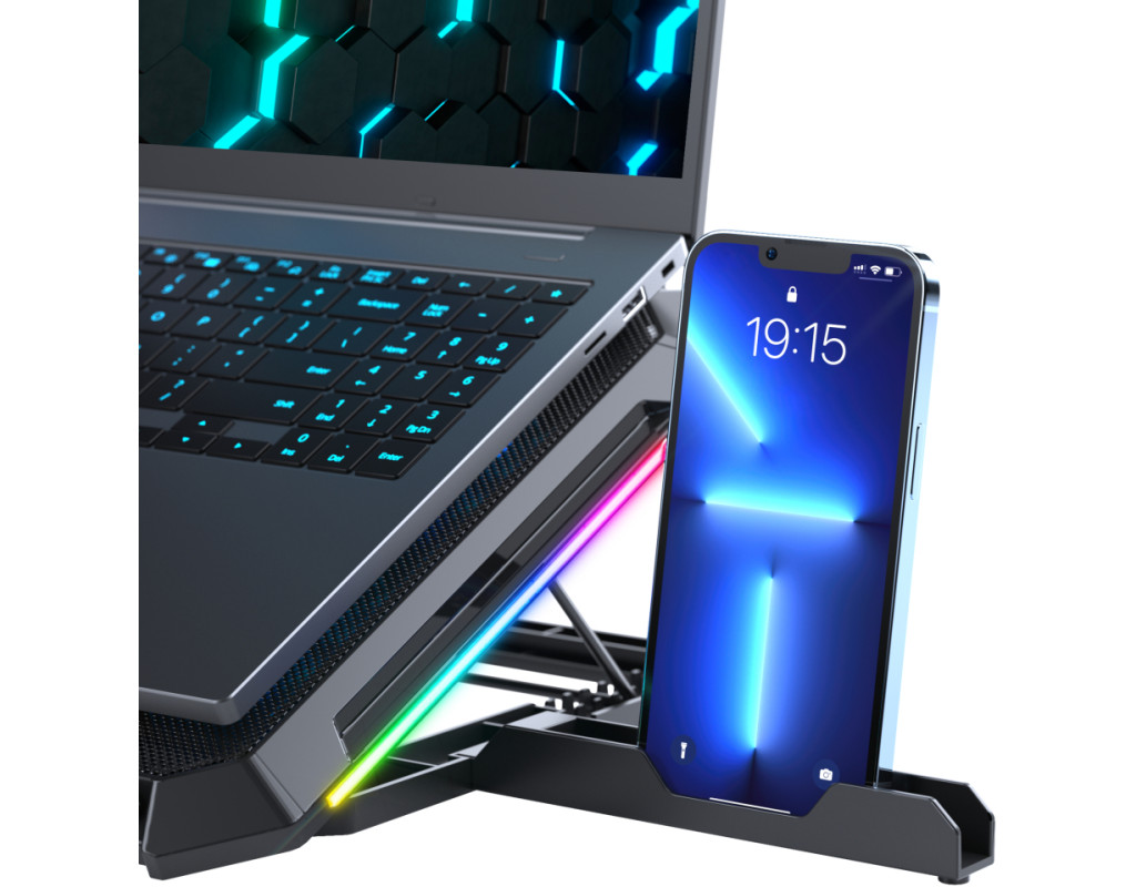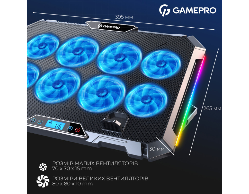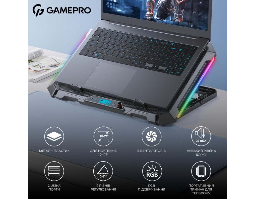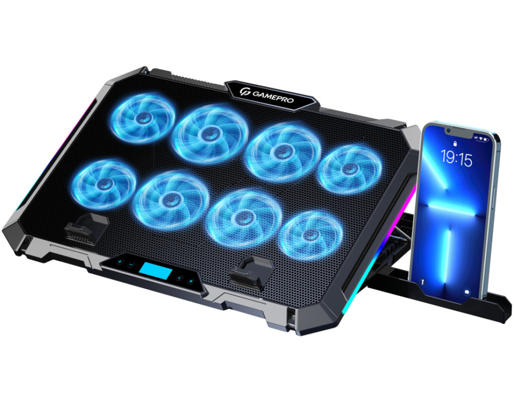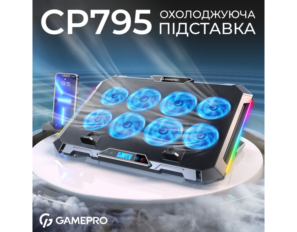 Охолоджуюча підставка Gamepro CP795 має 4 вентилятори розміром 70 х 70 х 15 мм, які працюють на швидкості 2320 об/хв, та 4 вентилятори розміром 80 х 80 х 10 мм із швидкістю 1750 об/хв. Завдяки семи налаштовуваним рівням висоти, кожен користувач може знайти оптимальний кут для роботи або розваг. Десять різних режимів RGB-підсвічування створюють неповторну атмосферу, роблячи робочий або ігровий процес ще більш захоплюючим. Робоча напруга всього 5V, що робить цю підставку енергоефективною та економічною. Два USB-роз'єми дозволяють підключати додаткові пристрої, а вбудований тримач для смартфона дає змогу тримати гаджет прямо перед собою для зручного доступу. CP795 оснащена LCD-дисплеєм, який відображає поточний рівень швидкості вентиляторів і дозволяє легко керувати параметрами через інтуїтивно зрозумілий інтерфейс. Матеріали, використані у створенні підставки, забезпечують надійність і довговічність: залізна сітка та високоякісний АБС-пластик гарантують тривалий термін служби. Завдяки цим характеристикам, CP795 — це не просто гаджет, а надійний помічник у створенні комфортного та продуктивного робочого середовища. |