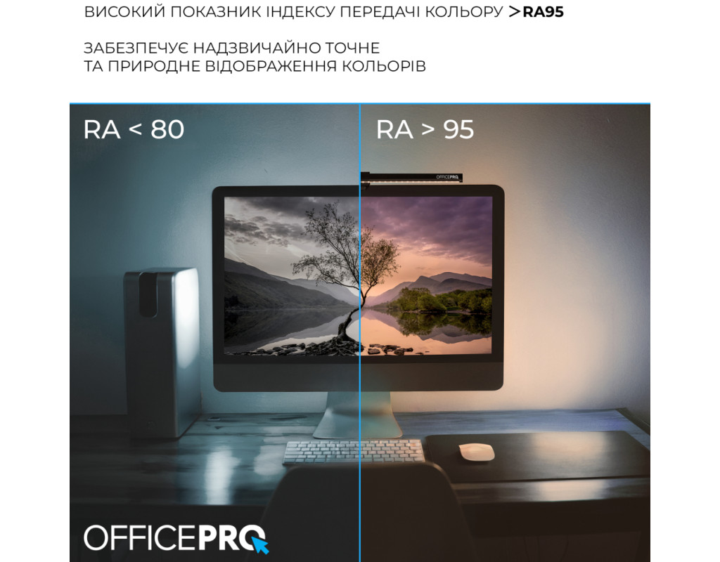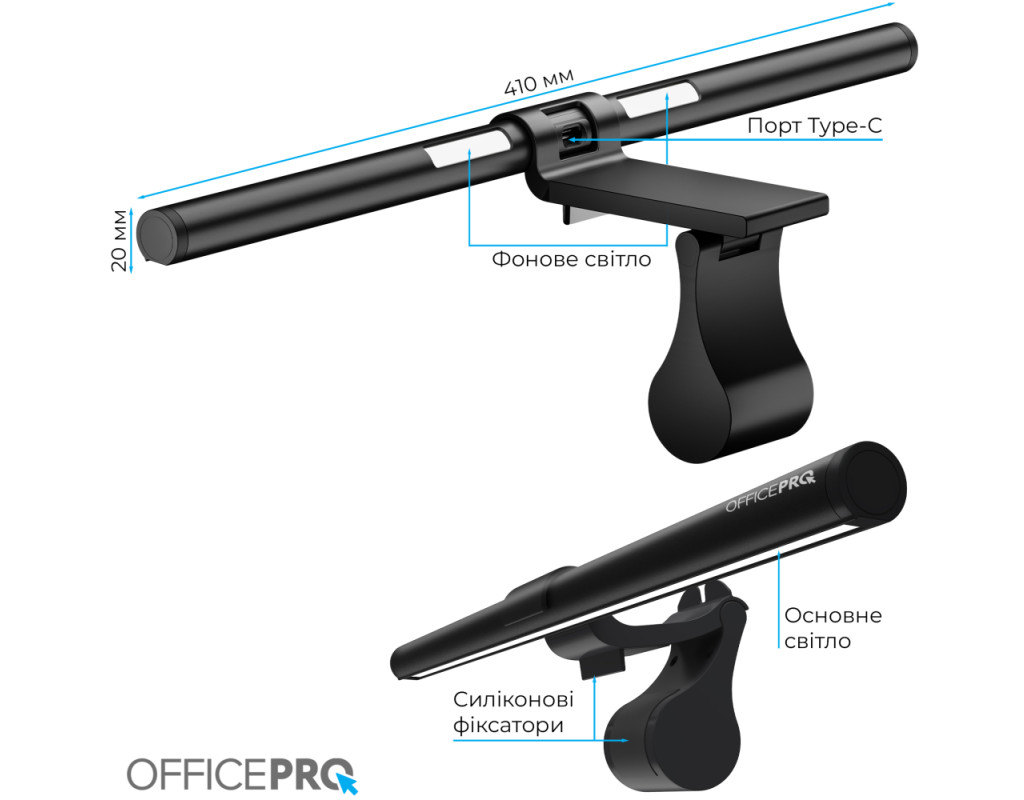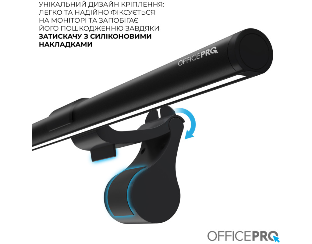 Скрінбар Officepro SL145B є інноваційним рішенням для освітлення, яке надійно кріпиться до монітора, не займаючи додаткового місця на робочому столі. Завдяки асиметричному освітленню пристрій зменшує відблиски на екрані, забезпечуючи комфортний робочий процес. Модель пропонує регулювання яскравості та колірної температури для задоволення різних потреб користувача. Антиковзкі накладки на кріпленні гарантують стабільність і захист монітора від подряпин. Високий індекс передачі кольору сприяє точному та природному відображенню кольорів. Переваги