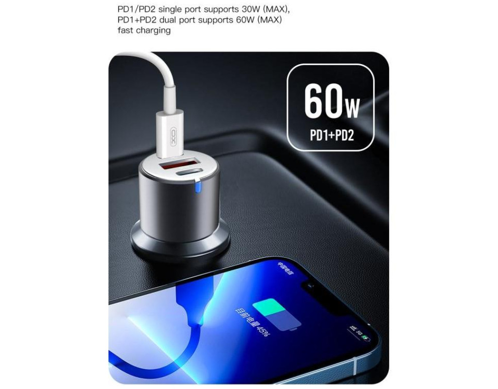 | Зарядний пристрій XO CC45 1 USB QC 3.0 + 2 Type-C PD (60W) Black (модель XO-CC45-BK) пропонує унікальне поєднання потужності і універсальності, ставши вашим найкращим помічником в автомобільних подорожах. Спроектований для живлення від прикурювача, цей пристрій здатен водночас заряджати до трьох гаджетів завдяки трьом портам: одному USB і двом USB Type-C. Завдяки максимальної вихідній потужності у 60 Вт, цей адаптер швидко заряджає смартфони, планшети і навіть ноутбуки, приносячи вам справжню свободу від довгого очікування. Серед головних переваг моделі XO CC45 - інтеграція технологій Power Delivery і Quick Charge 3.0, що оптимізують процес зарядки, забезпечуючи максимальну швидкість без шкоди для безпеки. Особлива увага приділена якості матеріалів: пристрій виготовлений з міцного алюмінієвого сплаву, що забезпечує тривалість використання та надійність. Компактність та LED-підсвічування підвищують комфорт: заряджання девайсів у темряві перестає бути проблемою. Безпека - ще один важливий аспект XO CC45. Багаторівнева система захисту охороняє ваші пристрої від перенапруги, коротких замикань та інших неприємностей, що робить його ідеальним вибором для будь-якого транспортного засобу, будь то легковий чи вантажний автомобіль. Оберіть XO CC45, щоб гідно оцінити якість та комфорт, які з ним пов’язуються. Це ваш персональний енергетичний центр, що забезпечує постійну готовність ваших гаджетів до роботи, незважаючи ні на що. |