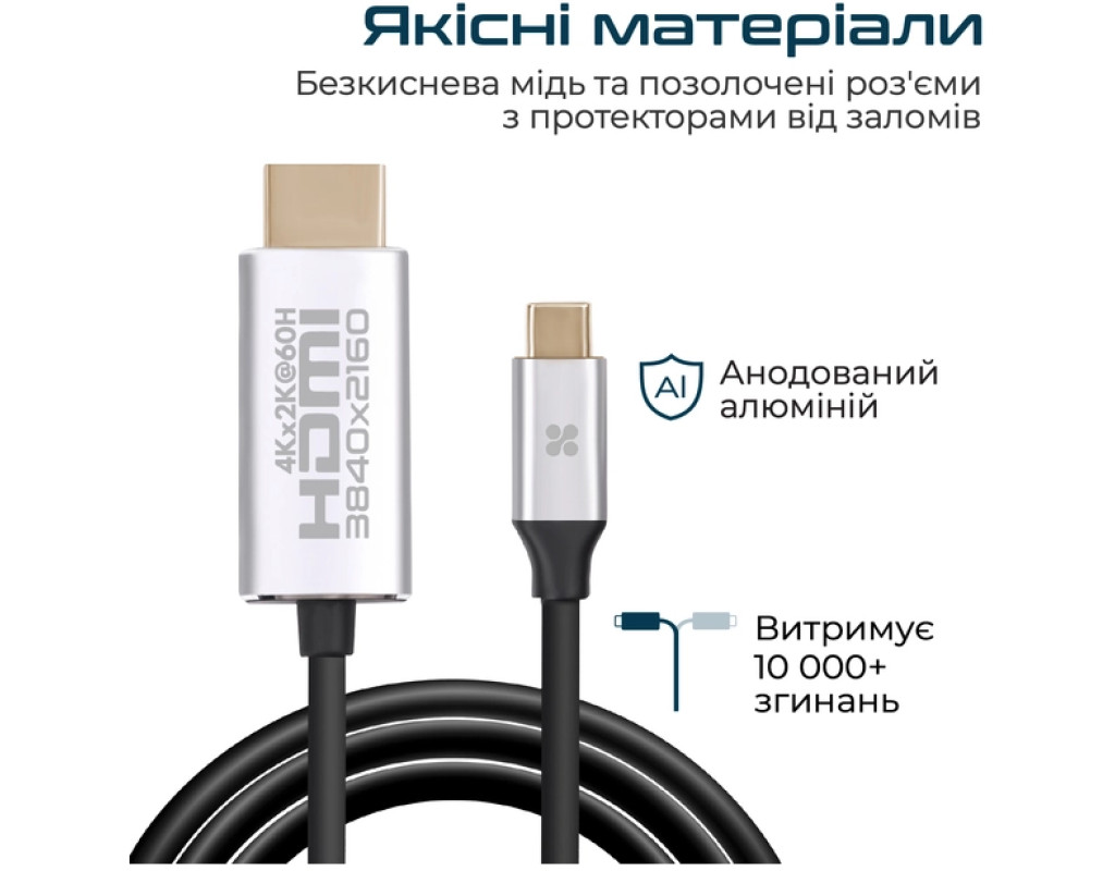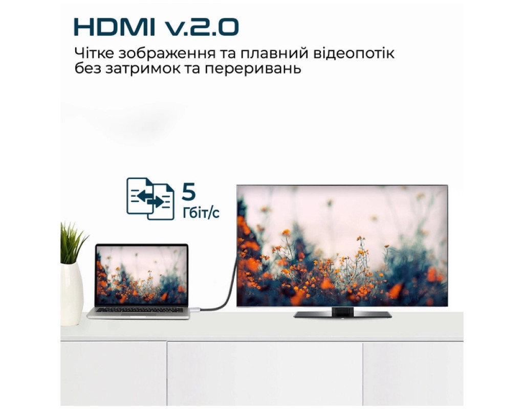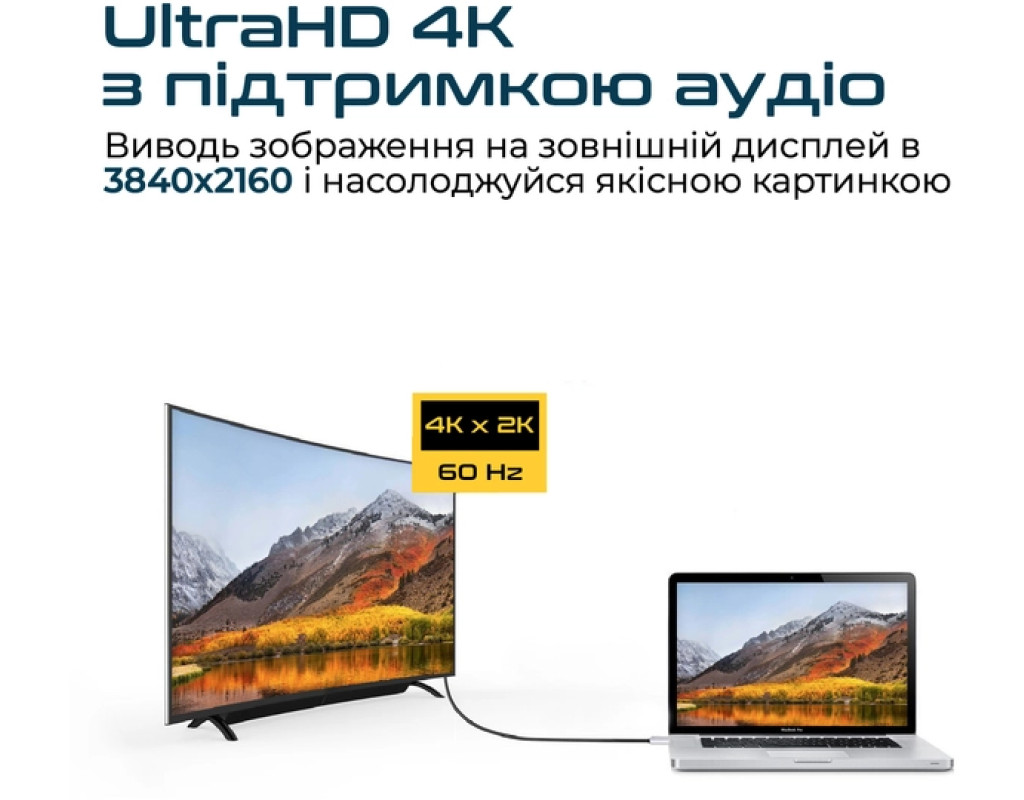 HDLink-60H HDLink-60H — преміум-кабель для під'єднання USB-C до HDMI. З цим адаптером ви можете під'єднати ноутбук, планшет або смартфон з підтримкою Type-C до телевізора або проектора з підтримкою HDMI. Кабель підтримує роздільну здатність 3840 x 2160 із частотою 60 Гц, забезпечує приголомшливу чіткість і звук для перегляду зображень і відео в UHD якості.Ultra HD 4K 60 Гц із підтримкою аудіо Дивіться фільми та серіали в роздільній здатності Ultra HD 4K (3840 x 2160) з високою частотою оновлення (60 Гц). Ви зможете оцінити красу природи та віртуозні спецефекти без втрати якості від джерела, з кількістю пікселів учетверо більше, ніж у Full HD 1080p. Адаптер також підтримує передавання звуку на потужніші динаміки телевізора.Простий у налаштуванні та використанні Просто під'єднайте один кінець кабелю до USB-C порту на комп'ютері, планшеті або смартфоні, а інший — до вашого дисплея або проектора. Зображення з пристрою з'явиться на великому екрані без додаткового програмного забезпечення.Потокове відео зі смартфонів Виводьте потокове відео спортивних подій, фільми, ігри, а також фото прямо з вашого смартфона (Samsung Galaxy S9/S9 Plus, S8/S8 Plus/Note 8, HTC U11, Mate 10 та інші моделі з підтримкою Type-C) на екран.Портативний кабель HDLink-60H знадобиться в подорожі та відрядженнях і не потребуватиме багато місця. Діліться презентаціями з колегами, переглядайте відео та веб-сайти на великому екрані.Широка сумісність HDLink-60H можна під'єднати до будь-якого пристрою виведення зображення з підтримкою HDMI. Кабель розроблений для роботи з комп'ютерами, смарт-пристроями останнього покоління з підтримкоюUSB Type-C. |