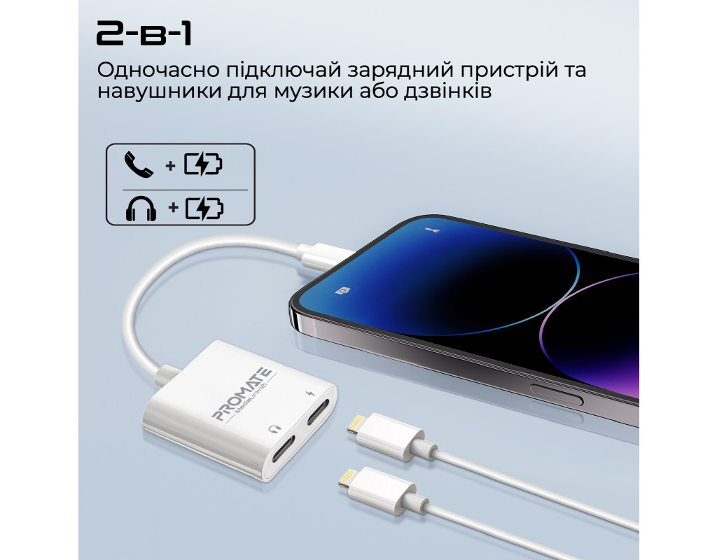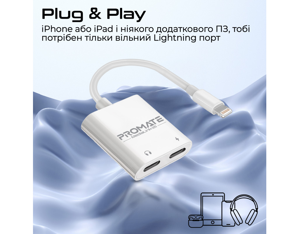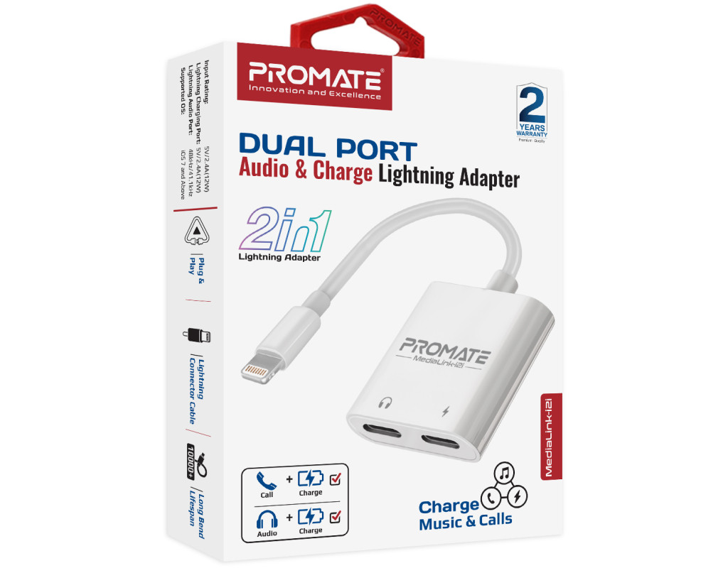 Особливості: - 2-в-1: Одночасно підключай зарядний пристрій та навушники для музики або дзвінків. Зручність та функціональність в одному пристрої - Lightning Audio порт: Підключай навушники та насолоджуйся чистим звуком без шумів і перешкод - 12W Lightning-in: Адаптер здатний передавати живлення від джерела на потужності до 12W - Якісні матеріали: Корпус з ABS пластику, кабель в ПВХ оболонці та з посиленнями в місцях зламу - все це забезпечує довговічність MediaLink-i2і - Компактний розмір: З невеликими габаритами і легкою вагою, ґаджет займає мінімум місця та з легкістю поміщається навіть в карман - Plug & Play: iPhone або iPad і ніякого додаткового ПЗ, тобі потрібен тільки вільний Lightning порт |