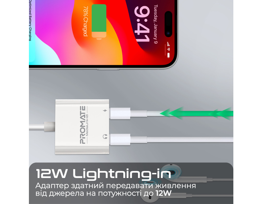 | Прослуховуй музику та одночасно заряджай свій iPhone або iPad з Promate MediaLink-i2і.