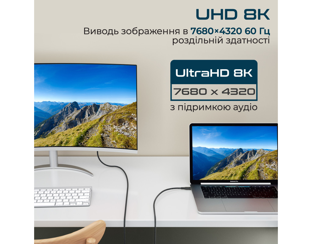 | Неймовірно швидке заряджання пристроїв на потужності 240W, передача інформації зі швидкістю 40 Гбіт/с, трансляція відео як 8К все це можливо з кабелем від Promate.