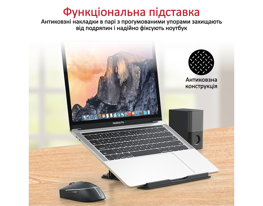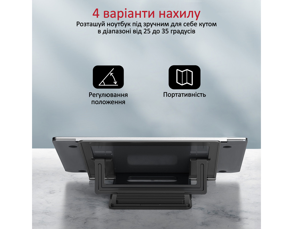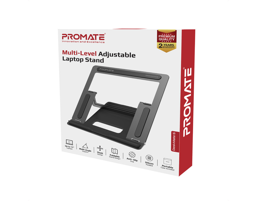 | Портативність, легкість, надійність і простота використання. Promate DeskMate-5 — стильне рішення для поліпшення ергономіки робочого місця, яке завжди можна взяти із собою.