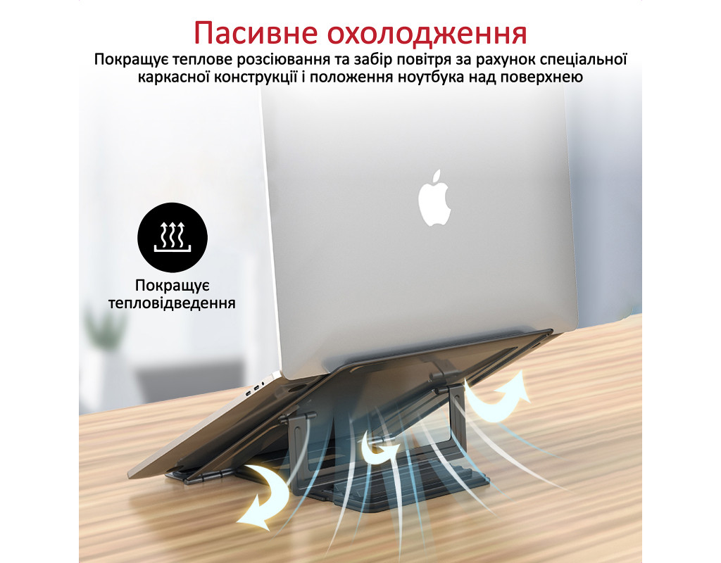 Особливості: - 4 варіанти нахилу: розташуй ноутбук під зручним для себе кутом у діапазоні від 25 до 35 градусів - Функціональна конструкція: антиковзні накладки в парі з прогумованими упорами захищають від подряпин і надійно фіксують ноутбук - Компактний розмір: у складеному стані має розміри всього лише 220х15х250 мм і вагу на 725 г. Підставка не займе багато місця і з легкістю поміститься в сумку - Пасивне охолодження: покращує теплове розсіювання й забір повітря завдяки спеціальній каркасній конструкції й положенню ноутбука над поверхнею - Мінімалістичний дизайн: стильна підставка з легкістю доповнить будь-який інтер’єр і стане ідеальним аксесуаром до вашого девайса - Турбота про поставу: DeskMate-5 забезпечує комфортний кут огляду, сприяючи виробленню правильного положення сидячи - Якісні матеріали: ґаджет з авіаційного алюмінієвого сплаву вирізняється надійністю й малою вагою - Широка сумісність: підходить для всіх ноутбуків із діагоналлю до 17 дюймів - Комплектний чохол: з міцної та приємної на дотик тканини, захищає від подряпин і зручний під час транспортування |