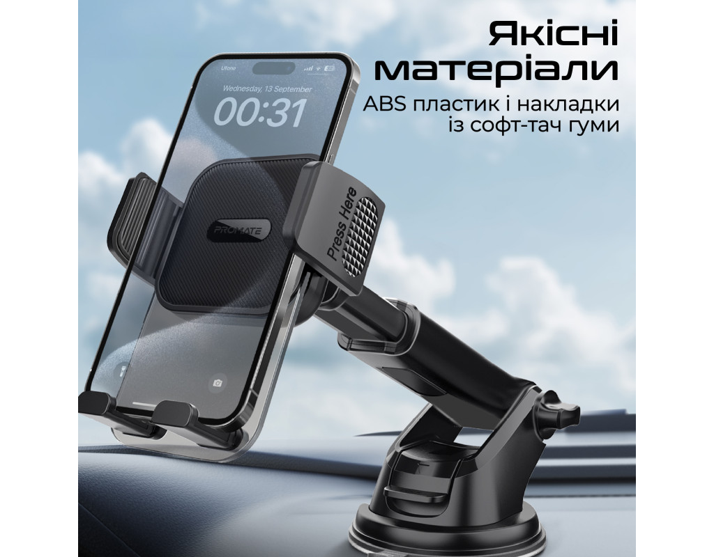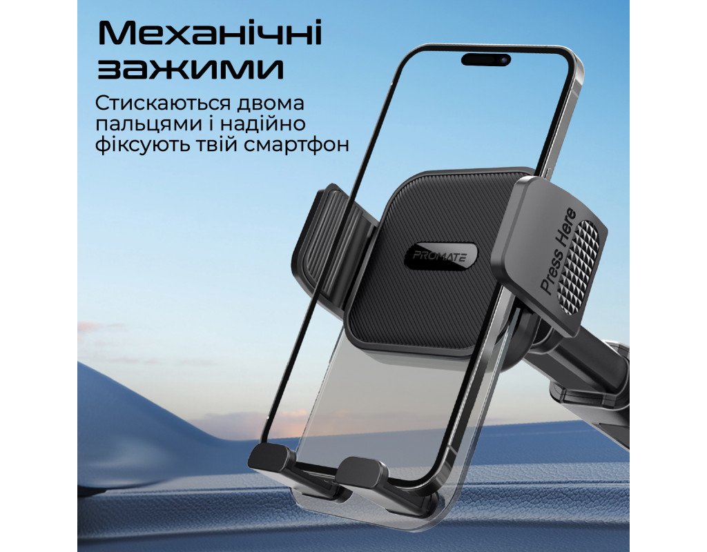 | Promate TransHold-EXT - функціональний автомобільний тримач на присоску, з механічними затискачами. Забезпечить надійну фіксацію будь-яких пристроїв з шириною від 5 до 9.5 сантиметрів.
