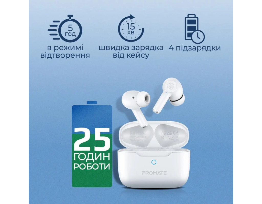 | Навушники Promate ProPods White (propods.white) – це новітній представник сегменту TWS (True Wireless Stereo) пристроїв 2023 року, що вражає своєю функціональністю та витонченим дизайном. Розроблені для найвимогливіших користувачів, ці навушники поєднують передові технології з вишуканим білим кольором, створюючи ідеальний баланс між стилем і якістю. Перш за все, їхні можливості бездротового підключення завдяки Bluetooth 5.3 забезпечують бездоганно стабільний та швидкий зв'язок із телефоном або ноутбуком. Це відкриває перед вами доступ до якісного звукового досвіду без жодних перебоїв і затримок. Крім того, вбудована функція динамічної оптимізації потужності дозволяє економити заряд батареї, щоб ви могли насолоджуватися музикою довше. Однією з ключових переваг Promate ProPods є активне шумозаглушення (ANC). Це технологія, що використовує вбудовані мікрофони для захоплення і компенсації зовнішніх шумів, створюючи ідеальні умови для прослуховування навіть у найбільш галасливих середовищах. Для тих моментів, коли ви хочете відчути зв'язок із довкіллям, передбачено прозорий режим, який забезпечує чудову якість прослуховування без відмови від навколишніх звуків. Навушники оснащені HD мікрофонами з функцією ENC (Environment Noise Cancellation), що гарантує чіткість передачі голосу. Це означає, що ваші дзвінки будуть максимально ясними, навіть у шумних умовах, що робить ці навушники незамінними для ділових зустрічей та важливих розмов. Ергономічний дизайн та використання високоякісних силіконових амбушур гарантують комфортне носіння. Вони щільно прилягають до вуха, забезпечуючи природну ізоляцію від зовнішніх звуків без дискомфорту при тривалому носінні. Незначна вага всього 45 грамів у поєднанні з компактним кейсом-акумулятором, що оснащено USB Type-C зручним зарядним портом, роблять навушники ідеальними для щоденного використання. Час автономної роботи цих навушників вражає: до 5 годин на одному заряді, і можливість підзаряду в кейсі ще до чотирьох разів забезпечує понад 25 годин користування без зупинок. Додатково, швидке заряджання дозволяє лише за 15 хвилин отримати декілька годин додаткового відтворення треків, що є надзвичайно зручним у сучасному швидкоплинному житті. IntelliTouch сенсорне управління додає зручності в експлуатації: ви можете легко керувати викликами, перемиканнями треків та режимами шумозаглушення всього одним дотиком. Завдяки функції автоматичного підключення до будь-якого Bluetooth підтримуючого пристрою, Promate ProPods стане вашим надійним супутником у будь-якій ситуації. Завдяки всім цим передовим можливостям та інноваційним функціям, навушники Promate ProPods White вирізняються серед аналогів у своєму сегменті. Вони ідеально поєднують модерний стиль із найсучаснішими технологічними досягненнями, роблячи кожен момент вашого прослуховування справжнім задоволенням. |