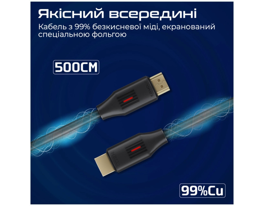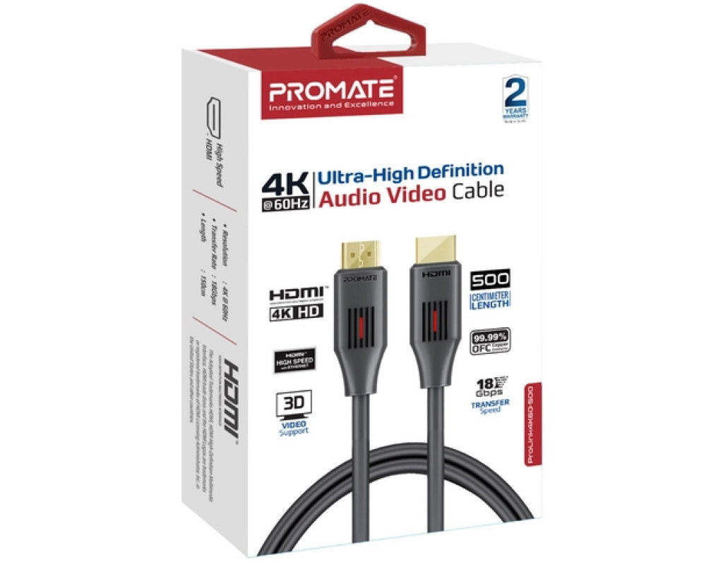 Виводь зображення на зовнішній дисплей у роздільній здатності UHD 4K за допомогою надійного HDMI кабелю Promate ProLink4K60-500.