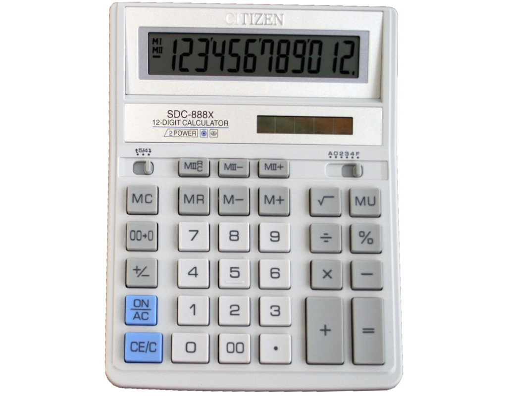 Калькулятор Citizen SDC-888XWH (1303XWH) дозволяє переглядати введені дані і вносити зміни. Присутній розрахунок торгової націнки, зміна знака, налаштування представлення десяткових чисел, кнопка "%", кнопка "00". Автоматичне відключення калькулятора. Особливості: розрядність: 12; клавіші введення розрядів: клавіша "00"; тип батареї: CR2032; тип пам'яті: дворівнева пам'ять; живлення: елемент живлення і сонячна батарея. |