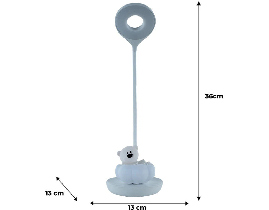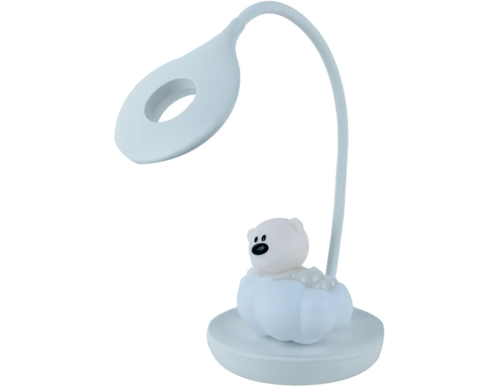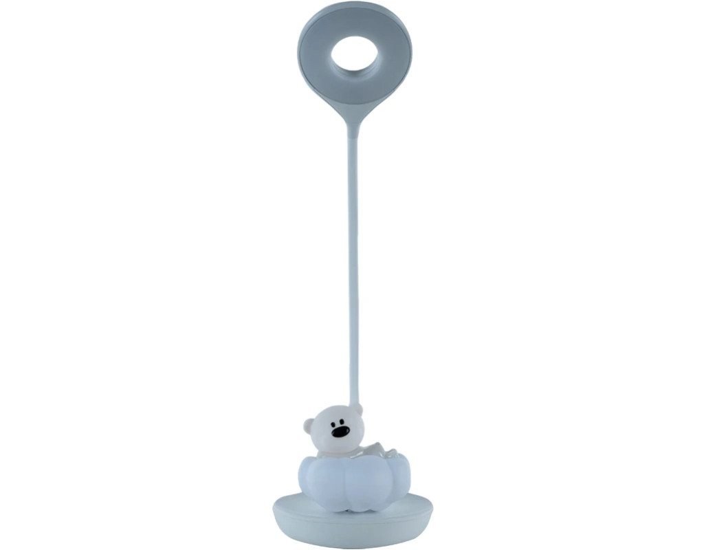 Настільна LED лампа Kite Cloudy Bear з акумулятором – унікальна багатофункціональна модель в чарівному дизайні. Це одночасно яскрава настільна лампа, за допомогою якої можна вчити уроки та читати книжки; і нічник з приглушеним розсіяним світінням, який створить затишну атмосферу для сну. Модель оснащена вбудованою літієвою батареєю ємністю 1200 мАг. Зручно заряджається за допомогою USB-кабелю, який входить до комплекту. А отже, лампою можна користуватися навіть без постійного доступу до електромережі – вона тримає заряд до 8 годин. Яскравість світіння регулюється дотиком: модель має 5 режимів для різних потреб. Дитина буде в захваті від чарівного дизайну з милим звірятком. Лампа стане вірним помічником школярів та дошкільнят, а також ефектно прикрасить інтер’єр кімнати. Завдяки безпечній LED-підсвітці, нічник не перегрівається навіть протягом тривалого використання. Особливості