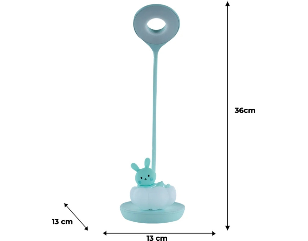 Настільна LED лампа Kite Bunny з акумулятором – унікальна багатофункціональна модель в чарівному дизайні. Це одночасно яскрава настільна лампа, за допомогою якої можна вчити уроки та читати книжки; і нічник з приглушеним розсіяним світінням, який створить затишну атмосферу для сну. Модель оснащена вбудованою літієвою батареєю ємністю 1200 мАг. Зручно заряджається за допомогою USB-кабелю, який входить до комплекту. А отже, лампою можна користуватися навіть без постійного доступу до електромережі – вона тримає заряд до 8 годин. Яскравість світіння регулюється дотиком: модель має 5 режимів для різних потреб. Дитина буде в захваті від чарівного дизайну з милим звірятком. Лампа стане вірним помічником школярів та дошкільнят, а також ефектно прикрасить інтер’єр кімнати. Завдяки безпечній LED-підсвітці, нічник не перегрівається навіть протягом тривалого використання. Особливості