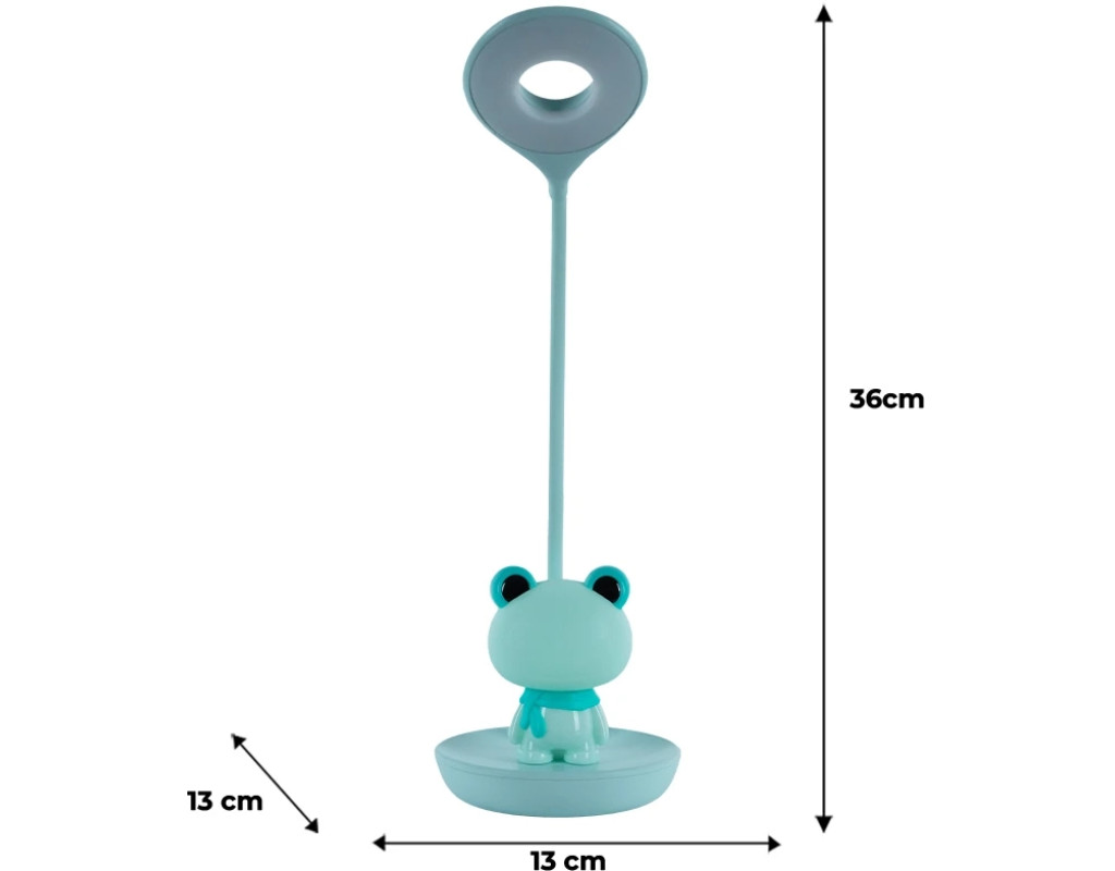 Настільна LED лампа Kite Froggy з акумулятором – унікальна багатофункціональна модель в чарівному дизайні. Це одночасно яскрава настільна лампа, за допомогою якої можна вчити уроки та читати книжки; і нічник з приглушеним розсіяним світінням, який створить затишну атмосферу для сну. Модель оснащена вбудованою літієвою батареєю ємністю 1200 мАг. Зручно заряджається за допомогою USB-кабелю, який входить до комплекту. А отже, лампою можна користуватися навіть без постійного доступу до електромережі – вона тримає заряд до 8 годин. Яскравість світіння регулюється дотиком: модель має 5 режимів для різних потреб. Дитина буде в захваті від чарівного дизайну з милим звірятком. Лампа стане вірним помічником школярів та дошкільнят, а також ефектно прикрасить інтер’єр кімнати. Завдяки безпечній LED-підсвітці, нічник не перегрівається навіть протягом тривалого використання. Особливості