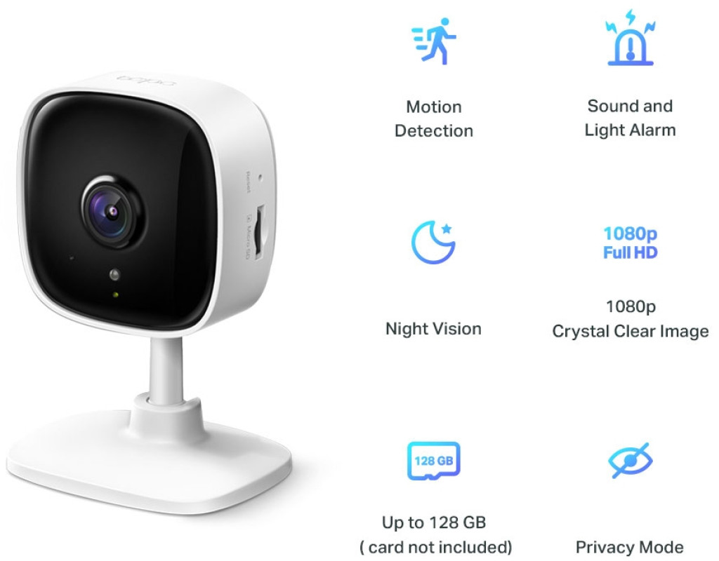 | Камера відеоспостереження TP-Link TC60 – це ідеальне рішення для вас, якщо ви прагнете забезпечити максимальний рівень безпеки свого дому чи офісу, не жертвуючи якістю та зручністю. Створена у формі кубу, ця IP-камера відзначається елегантним дизайном, який гармонійно вписується в будь-який інтер'єр завдяки стильному пластиковому корпусу. Вона підтримує бездротове підключення, що полегшує її встановлення та налаштування навіть для непідготовлених користувачів. Завдяки роздільній здатності 2 Мп (1920 x 1080), TP-Link TC60 забезпечує зображення високої чіткості, що дозволяє зафіксувати найдрібніші деталі. В інтеграції з матрицею CMOS розміром 1/3.2", ця камера гарантує якісне відтворення кольорів і деталей навіть при недостатньому освітленні. Для найтемніших умов передбачено інфрачервоне підсвічування з дальністю до 9 м, завдяки чому ви отримуєте чітке зображення навіть у повній темряві. Двостороннє аудіо – одна з особливостей TP-Link TC60, завдяки якій ви можете вести живий діалог через камеру. Це стане в нагоді, якщо ви хочете спілкуватися з близькими вдома або взаємодіяти з відвідувачами на відстані. Безпека підвищується за допомогою детектора руху, який миттєво надішле push-повідомлення на ваш смартфон при виявленні активності. Можливість налаштування зон виявлення дозволяє контролювати тільки важливі ділянки простору, тоді як система сигналізації може активувати світлові і звукові сигнали для відлякування небажаних гостей. Щодо конфіденційності, спеціальний режим конфіденційності дає можливість вимкнути спостереження тоді, коли це потрібно. Ви можете зберігати відзняті матеріали на карті пам’яті microSD місткістю до 128 ГБ, що відповідає 384 годинам відео, або 16 дням безперервного запису. Интуїтивний додаток Tapo дозволяє легко налаштувати та керувати TP-Link TC60. Усього за кілька простих кроків через додаток ви зможете розпочати користування камерою та ділитися пам’ятними моментами з вашими близькими. TP-Link TC60 працює у температурному діапазоні від 0°C до +40°C з напрямком живлення 9 В, що робить її універсальною для різноманітних умов експлуатації. Це не просто камера, а ваш персональний помічник для забезпечення безпеки та комфорту, на який можна розраховувати щодня. |