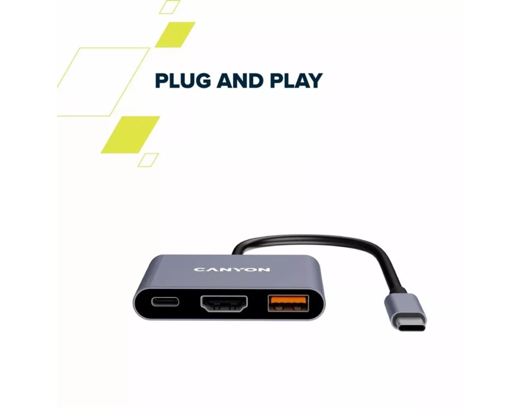 Концентратор Canyon hub DS-4 3in1 USB-C Grey (CNS-TDS4)