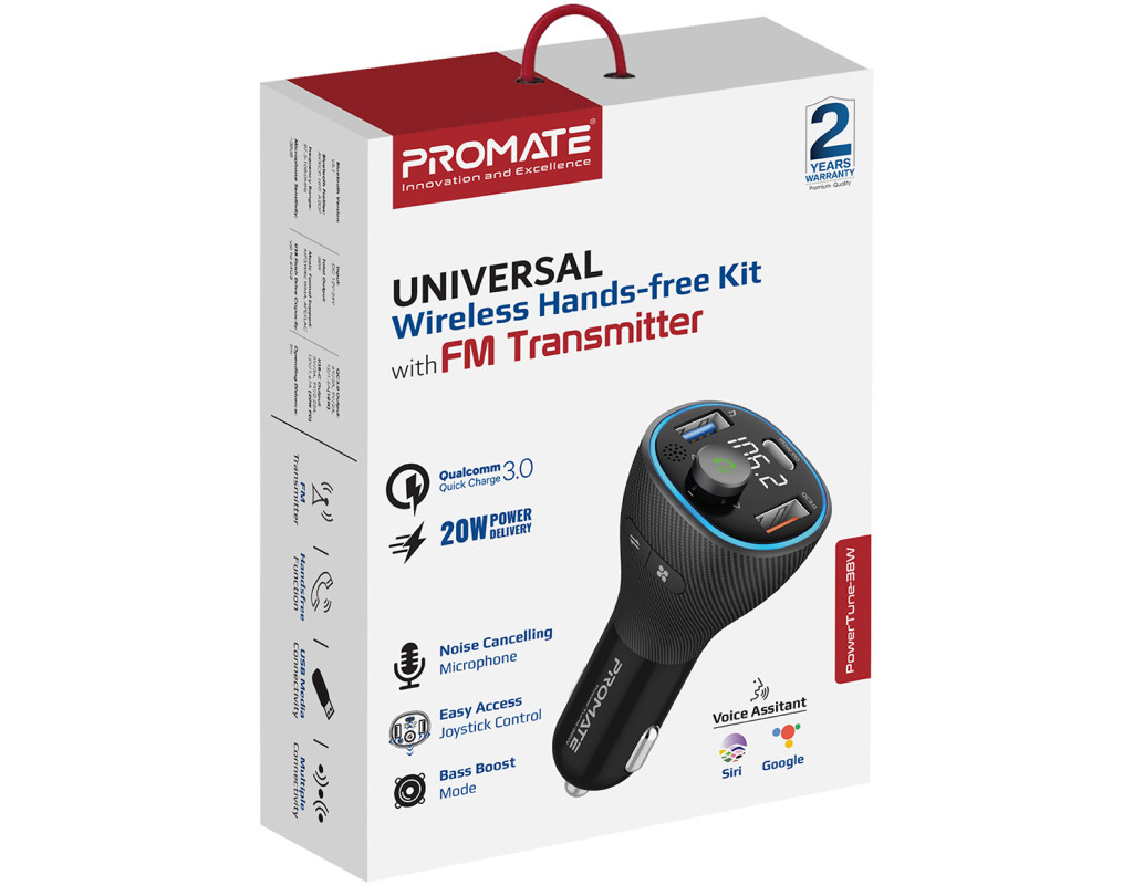 | Кришталево чисте звучання, підтримка технологій Power Delivery та Quick Charge 3.0, підсилювач басів і LED дисплей. PowerTune-38W - флагманський трансмітер 2022 року від Promate, який не тільки неперевершено відтворює музику, а й потужно заряджає.