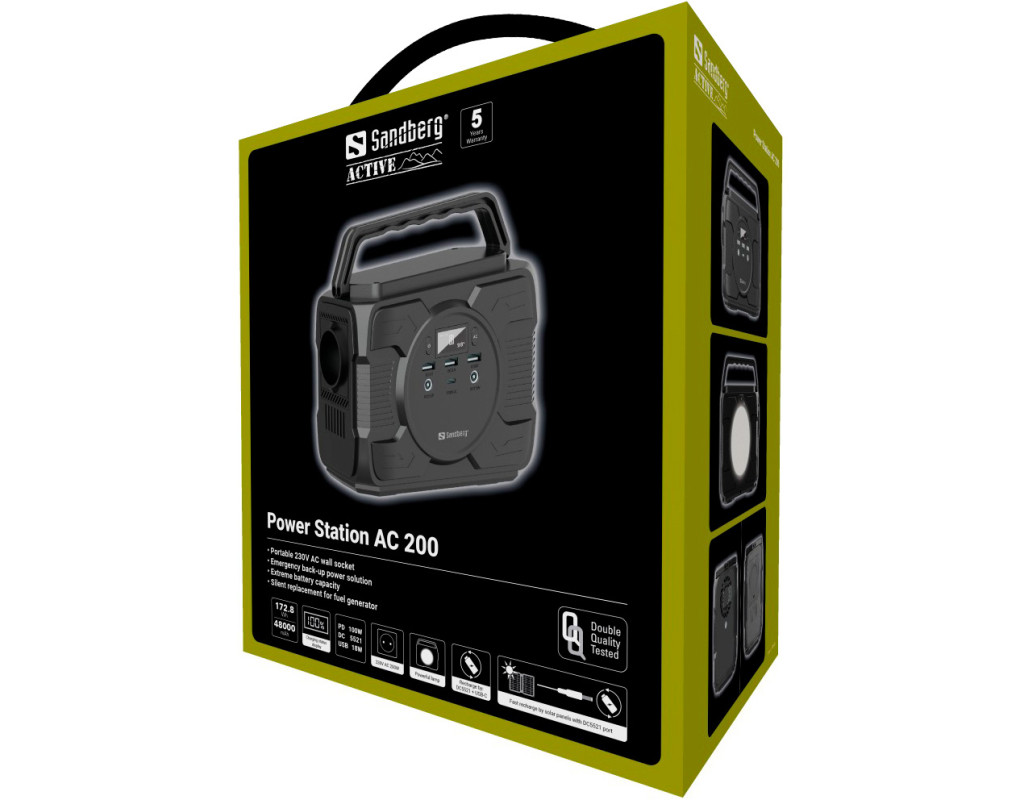 Зарядна станція з чистою синусоїдою Sandberg AC 200 (173 Вт/г) 200W призначена для безпечного та безперебійного живлення електрообладнання поза електромережею. Станція оснащена розеткою змінного струму 230 В, яка може видавати потужність до 200 Вт, двома вихідними портами постійного струму з максимальною потужністю до 120 Вт, портом USB-A потужністю до 18 Вт та портом USB-C з максимальною потужністю 100 Вт. Користуйтесь зарядною станцією Sandberg AC 200 (173 Вт/г) 200W вдома – ємності 48000 мАг вистачить для поповнення заряду мобільних телефонів, планшетів, ноутбуків та інших мобільних пристроїв. Беріть станцію з собою у кемпінг та насолоджуйтесь приємним відпочинком з друзями – організовуйте освітлення, заряджайте мобільні пристрої. Ліхтарик на задній панелі станції допоможе швидко зорієнтуватись на місцевості. Поповнити заряд електростанції Sandberg AC 200 (173 Вт/г) 200W можна від електромережі, через порт USB-C або від автомобільного прикурювача. LED-дисплей, розташований на передній панелі корпусу, сповіщатиме про поточний стан заряду станції. |