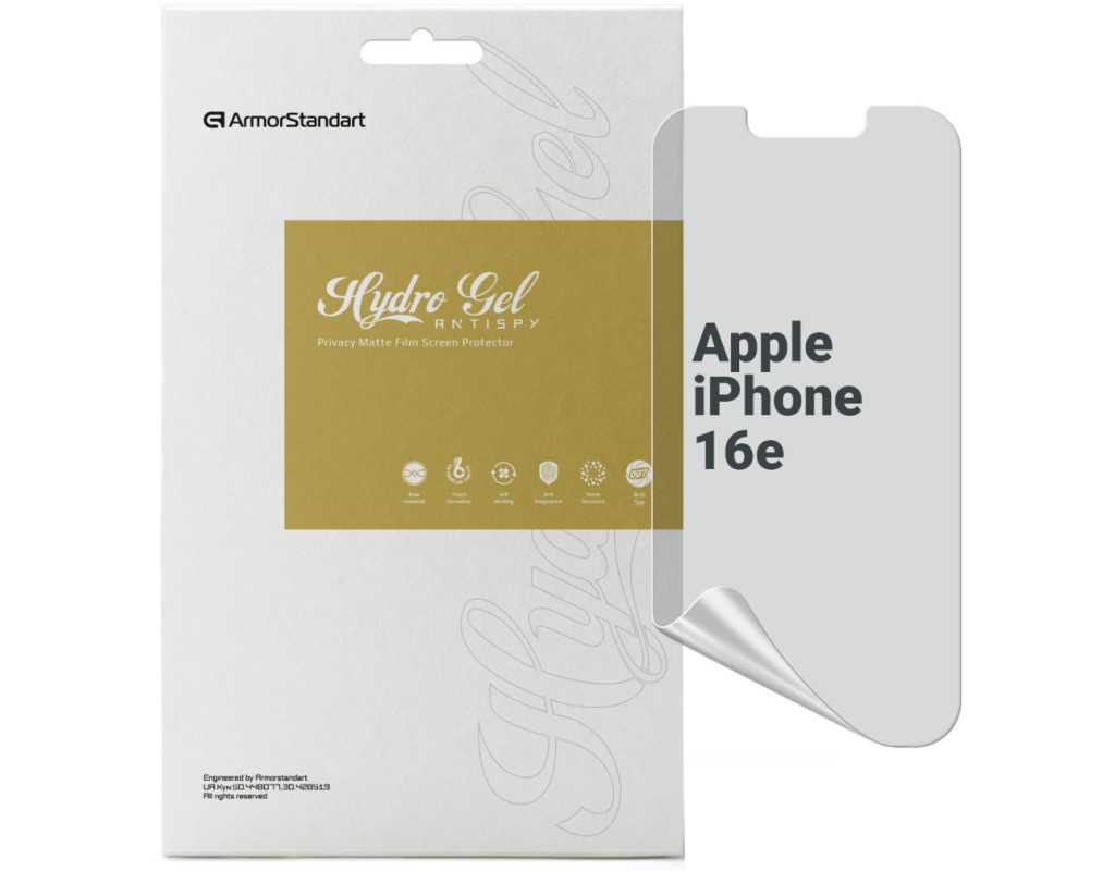 Призначення - для телефону, Вид покриття - конфіденційне, гідрогелева, Сумісність з моделями - Apple iPhone 16e, Кількість в упаковці - 1 шт