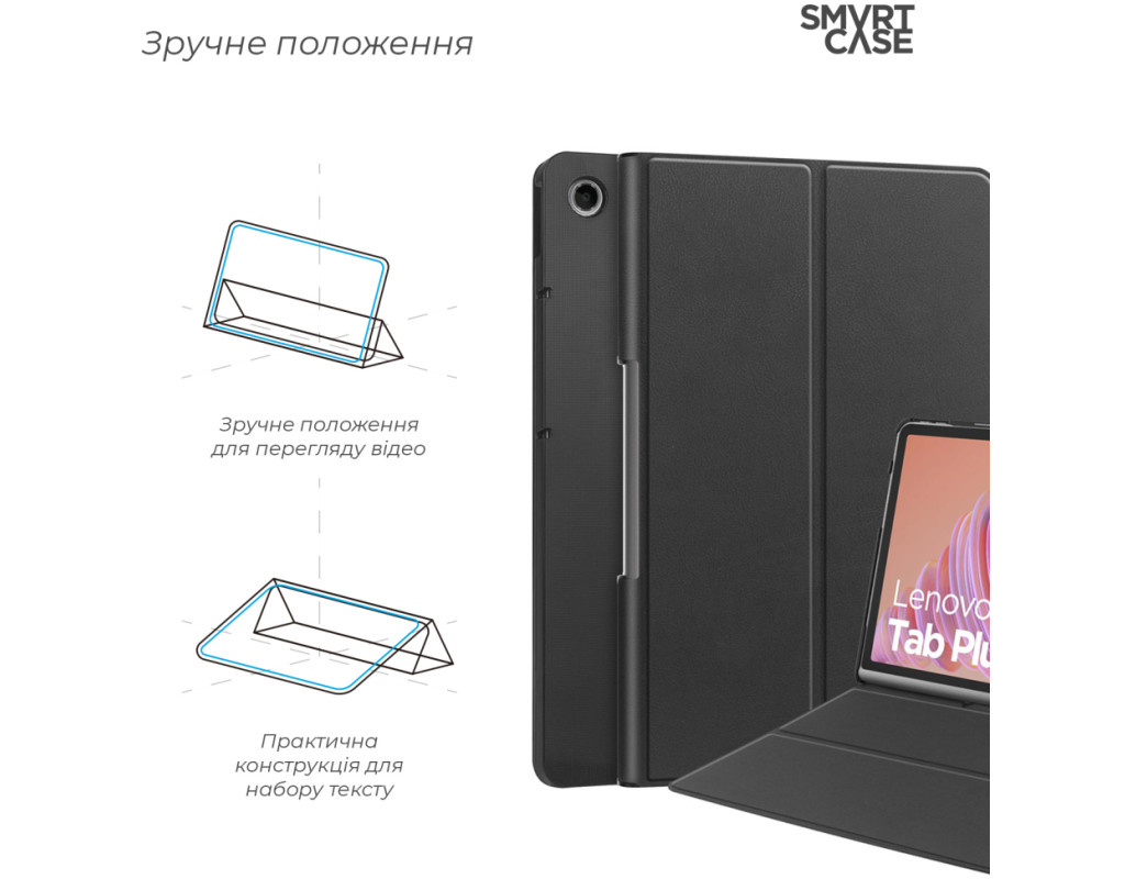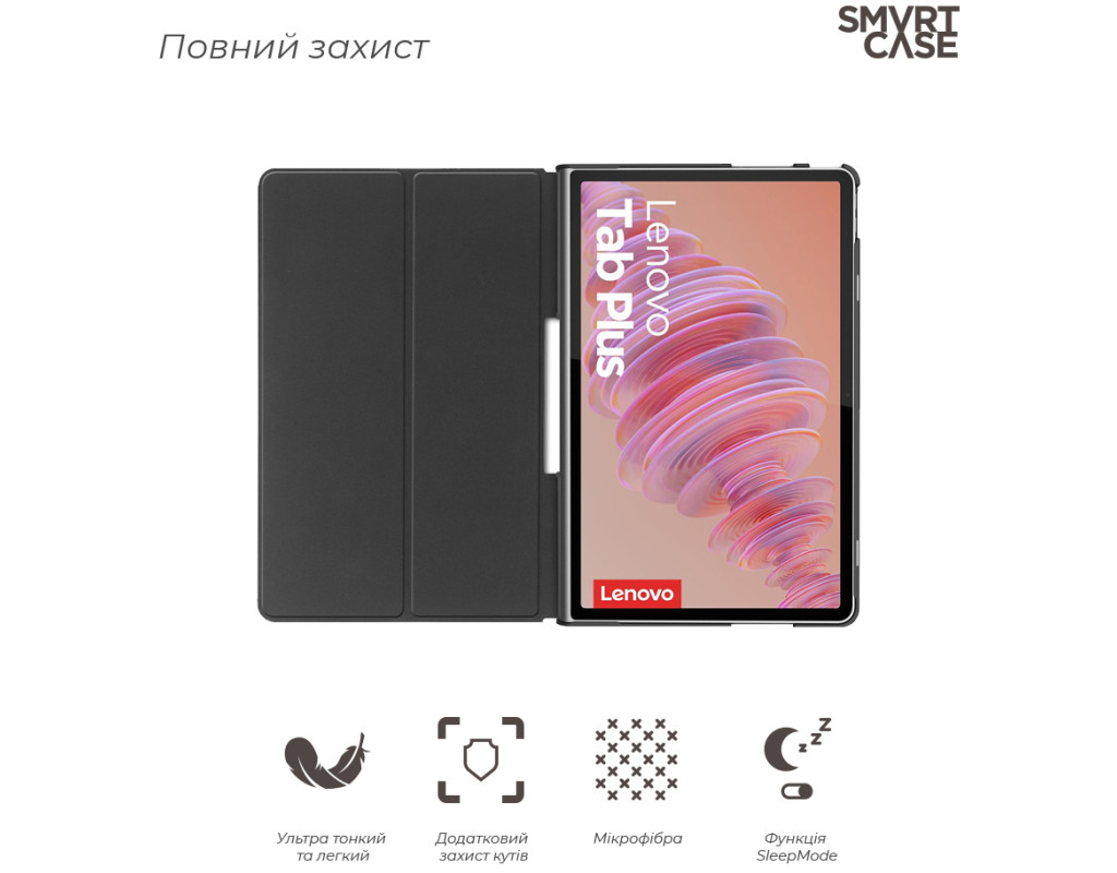 Тип - обкладинка, Сумісність з моделями - Lenovo Tab Plus 11.5", діагональ - 11.5, Спосіб кріплення - обкладинка, спосіб закриття - магніт, Матеріал - штучна шкіра, чорний