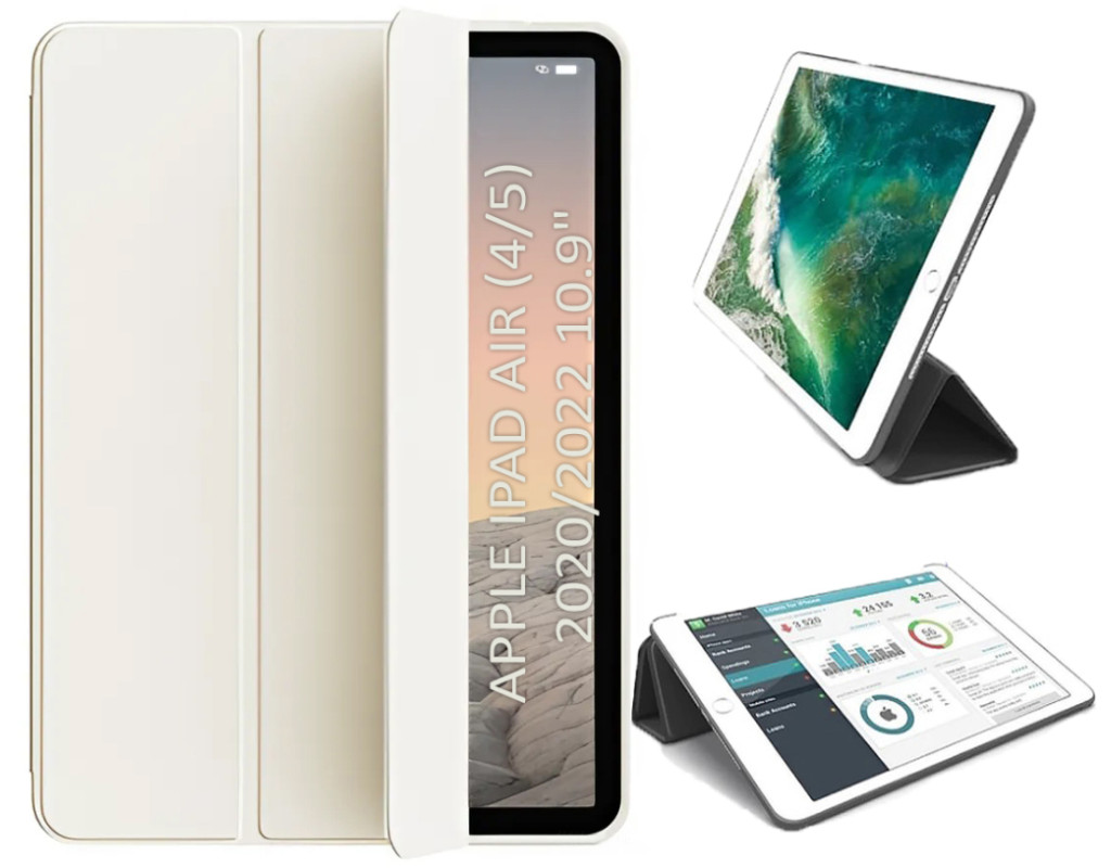 Тип - обкладинка, Сумісність з моделями - Apple iPad Air 4, Apple iPad Air 5, діагональ - 10.9, Спосіб кріплення - обкладинка, спосіб закриття - магніт, Матеріал - термополіуретан, штучна шкіра, бежевий