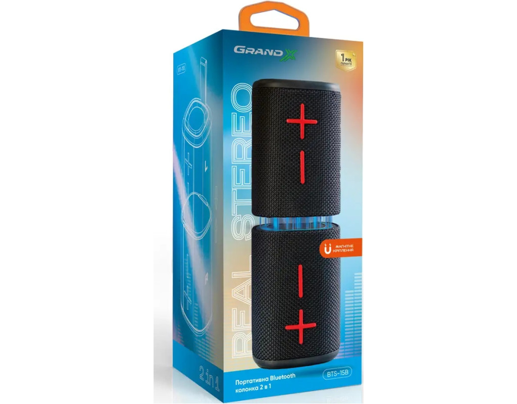 | Акустична система Grand-X Bluetooth 2 в 1 Black (BTS-15DB) – це поєднання елегантності, інновацій та потужності, що перетворює ваше звучання на справжню аудіо пригоду. Вона створена для тих, хто прагне високоякісного звуку і зручності у використанні в будь-якій ситуації, будь то вечірка, домашній відпочинок чи прогулянка на природі. Висока потужність у 10 Вт забезпечує насичений і глибокий звук, а дві колонки зі складанням 2.0 канала створюють вражаючий стерео ефект, що занурює вас в атмосферу концертного залу. Додайте сюди ще й магнітне з'єднання, яке дозволяє об'єднувати колонки в одну систему або використовувати їх окремо для створення об'ємного звукового ландшафту. Для тих, хто цінує не лише звук, але й атмосферу, Grand-X BTS-15DB надає можливість оживити ваш простір з допомогою LED підсвітки. Вона автоматично синхронізується з ритмом музики, додаючи особливий колорит і підкреслюючи настрій на будь-якій події. Вбудований мікрофон надає можливість без проблем відповідати на дзвінки, що робить спілкування зручним навіть під час прослуховування музики. Регулювання гучності дозволяє керувати звуком легко та швидко. Grand-X BTS-15DB підтримує різні способи підключення, серед яких Bluetooth, USB, TF-карта пам'яті та AUX-роз'єм. Це забезпечує максимальну зручність у використанні з будь-якими пристроями, даючи змогу насолоджуватись улюбленою музикою у найкращій якості. Підтримка Bluetooth 5.3 гарантує стабільне і швидке з'єднання, а технологія SBC бездоганно декодує аудіо. Колонки виготовлені з міцного ABS пластику, що забезпечує довговічність і легкість – всього 0.8 кг. Ця портативність дозволяє брати з собою улюблену музику куди завгодно. Щодо живлення, ви можете обрати найзручніший варіант: USB, мережу або акумулятор, який швидко заряджається та забезпечує до п'яти годин безперервного звучання. Grand-X BTS-15DB – це не просто акустична система, а справжній музичний супутник. Він стане невід’ємною частиною вашого повсякденного життя, приносячи, окрім звуку, естетичне задоволення від кожної деталі. Обирайте Grand-X BTS-15DB, якщо ви цінуєте якість, функціональність і стиль. Це ідеальний вибір, щоб насолоджуватися кожною нотою вашого життя. |