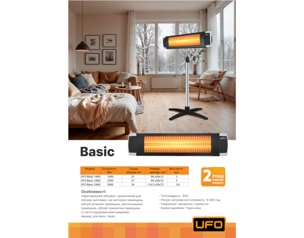 | Обігрівач UFO Basic 2900 (UFO-YU29EN) пропонує відмінне рішення для тих, хто прагне тепла та затишку в холодну пору року. Завдяки інфрачервоній технології, цей обігрівач ефективно обігріває площу до 35 кв.м. З потужністю у 2900 Вт, прилад забезпечує швидке прогрівання простору, даруючи вам комфорт за лічені хвилини. Однією з ключових особливостей є фламентиновий нагрівальний елемент, який відзначається високою ефективністю і рівномірним розподілом тепла. Інноваційний елемент дозволяє досягти необхідної температури лише за 30 секунд, що робить обігрівач незамінним помічником у вашому домі. Завдяки механічному управлінню, налаштування температури здійснюється легко і швидко, а наявність термостата допомагає підтримувати стабільний тепловий режим, що сприяє економії енергії. Не менш важливою перевагою є універсальність встановлення: ви можете розмістити обігрівач на стіні, стелі або на підлозі за допомогою комплектної телескопічної ніжки. Це дозволяє максимально адаптувати його положення під індивідуальні потреби та вписати у будь-який інтер’єр. Вологозахисні властивості обігрівача забезпечують безпечну експлуатацію у вологих приміщеннях, таких як ванні кімнати чи сауни, тому його також можна використовувати у теплицях. Елегантний чорний колір додає приладу сучасного вигляду, гармонійно вливаючи його у будь-який стиль інтер'єру. З обігрівачем UFO Basic 2900 ви отримуєте не лише тепле середовище, а й надійну, технологічно просунуту та довговічну техніку, яка стане вашим вірним помічником у турботі про домашній комфорт. Це ідеальна і надійна інвестиція у ваш затишок, що підходить для будь-якої пори року. |