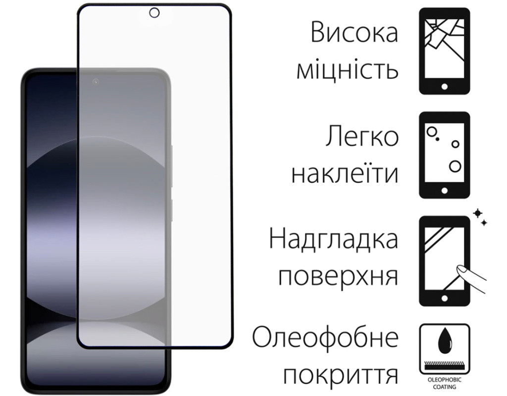 Призначення - для телефону, Вид покриття - глянсове, Сумісність з моделями - Xiaomi Redmi Note 14, Кількість в упаковці - 1 шт