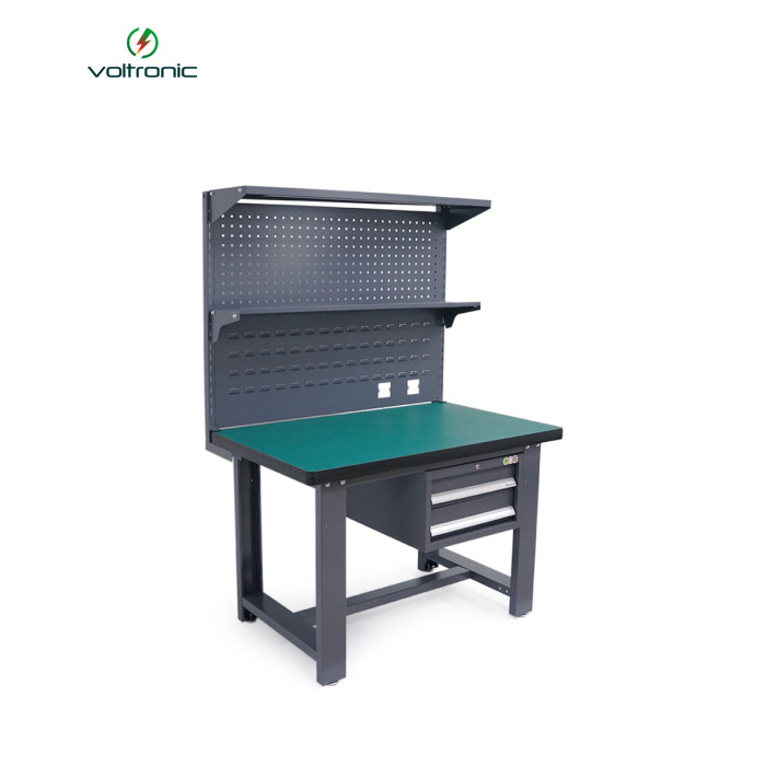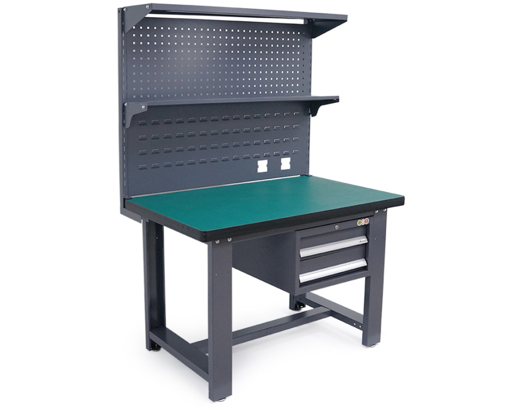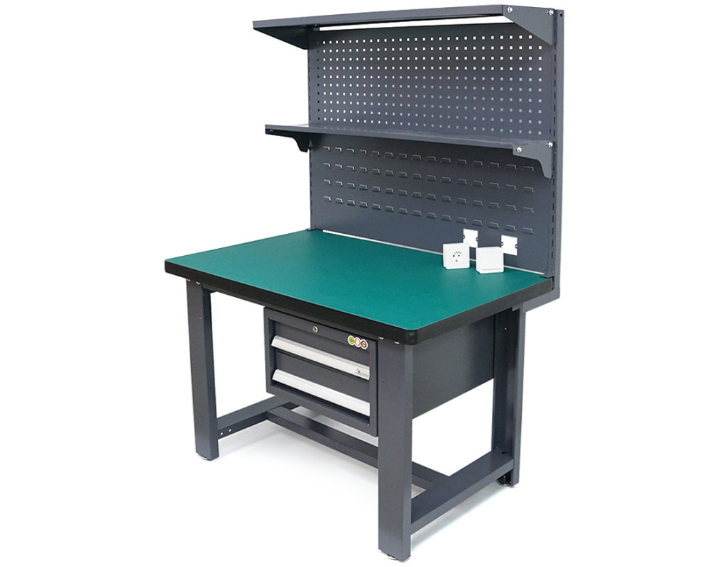 | Професійний робочий стіл для монтажу та ремонту електронних компонентів та чутливого обладнання. Стіл забезпечує надійний захист від статичної електрики завдяки спеціальному покриттю робочої поверхні, що відводить електростатичні розряди. Ергономічна висота 180 см дозволяє комфортно працювати як сидячи, так і стоячи. Конструкція столу включає дві навісні тумби з ящиками для зберігання інструментів та дві просторі полиці для розміщення обладнання та матеріалів. Міцна металева рама та стільниця з високоякісних матеріалів забезпечують стійкість та тривалий термін служби навіть при інтенсивній експлуатації. Стіл може бути використаний для: - Складання та ремонту електронних пристроїв та друкованих плат - Монтаж та обслуговування телекомунікаційного обладнання - робіт з чутливими до статики компонентами та мікросхемами - Організації робочого місця у сервісних центрах та ремонтних майстернях - Проведення лабораторних досліджень та вимірювань Характеристики: - Розміри: 120×75×180 см (довжина×ширина×висота) - Робоча поверхня: антистатичне покриття - Конструкція: металева рама з порошковим покриттям - Кількість ящиків: 2 навісні ящики - Кількість полиць: 2 - Призначення: для слюсарних та електронних робіт - Захист: від статичної електрики - Вагове навантаження на стільницю: до 150 кг - Вагове навантаження на полиці: до 50 кг кожна - Сумісність: з антистатичними килимками та аксесуарами - Особливості: заземлюючий термінал для підключення - Умови експлуатації: закриті приміщення з нормальною вологістю |