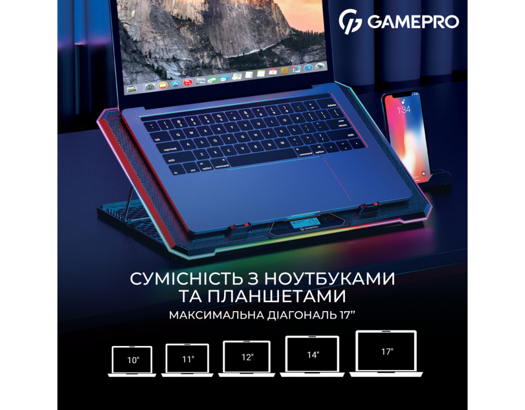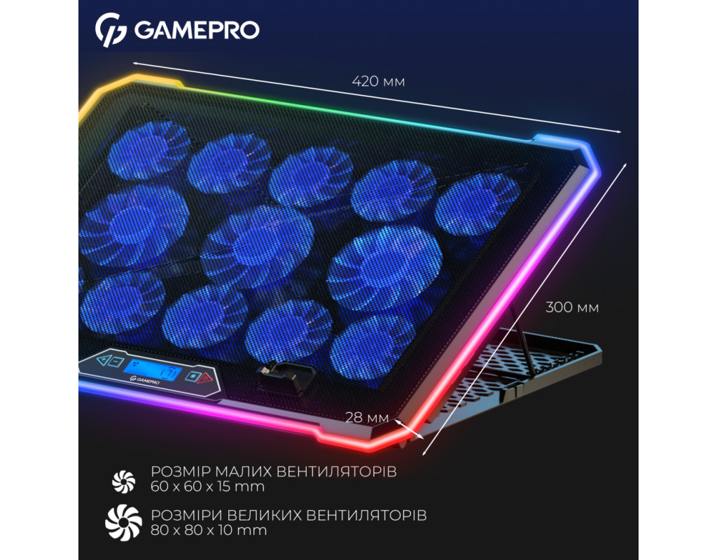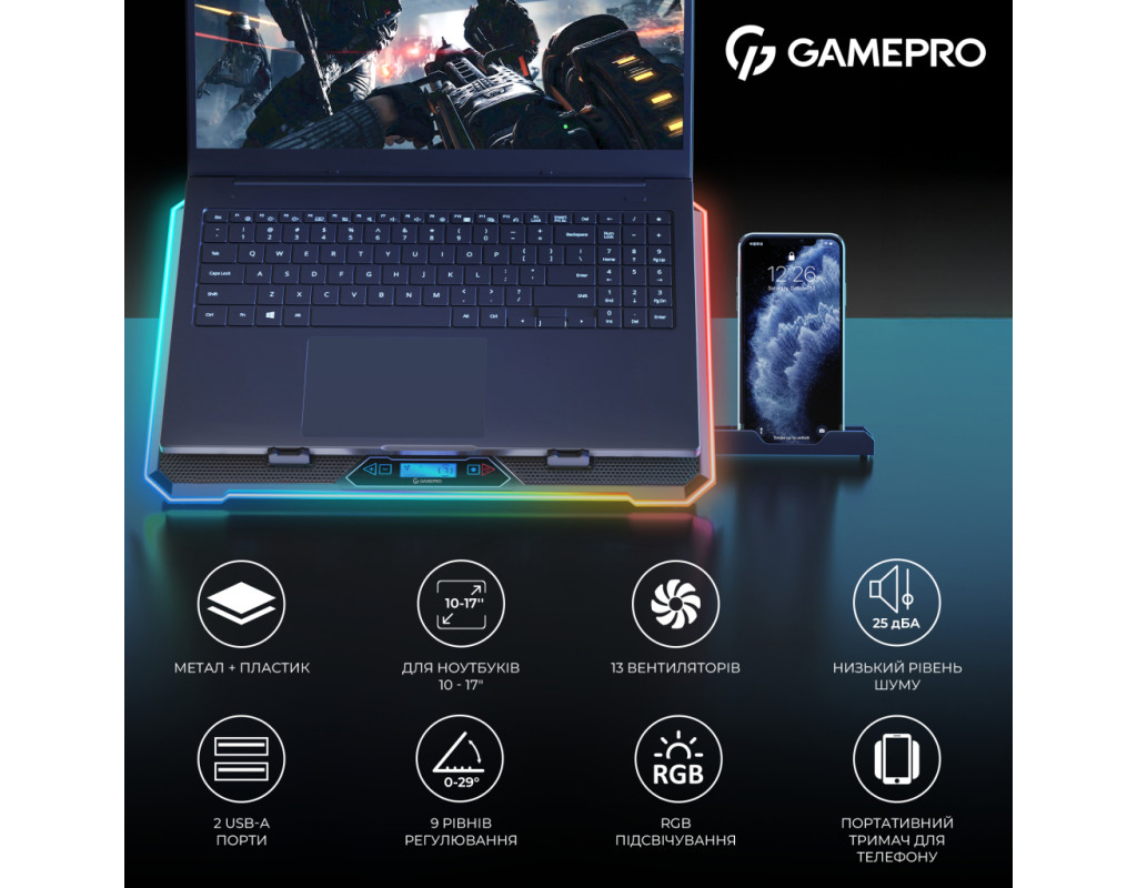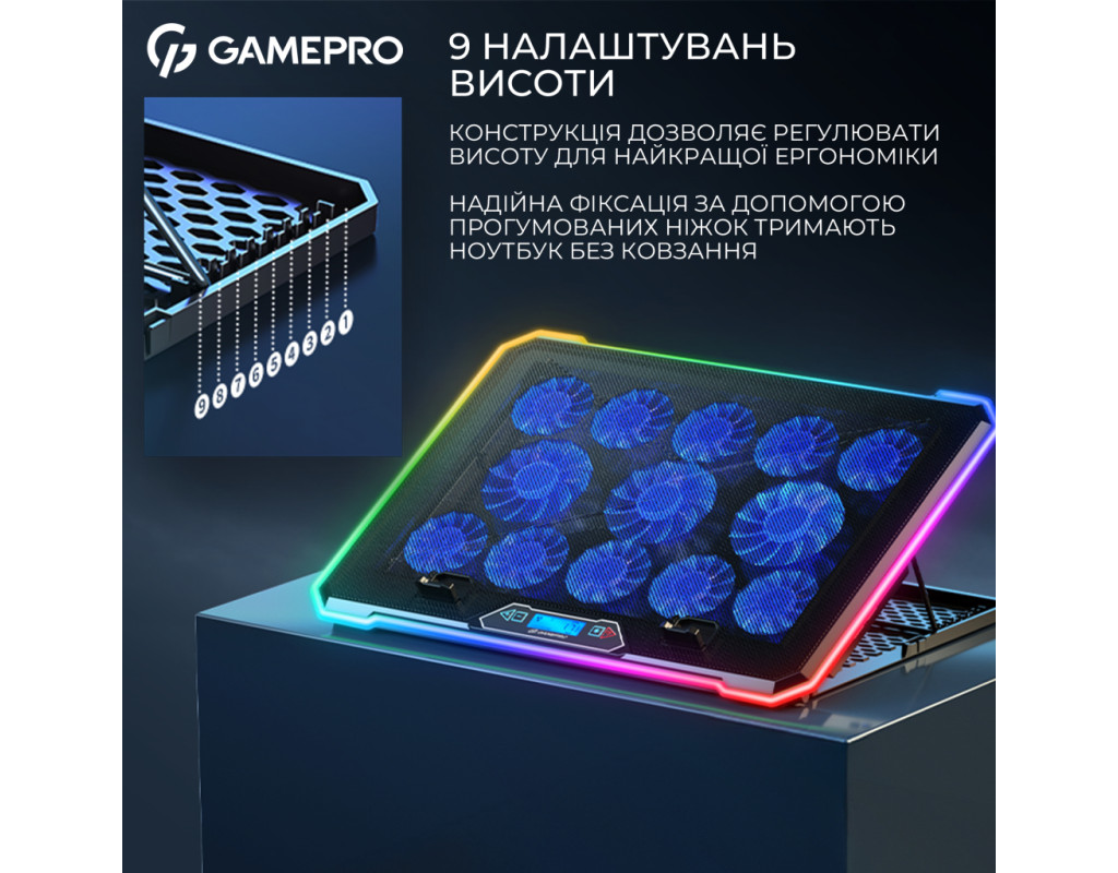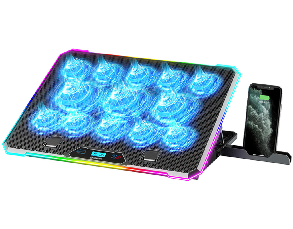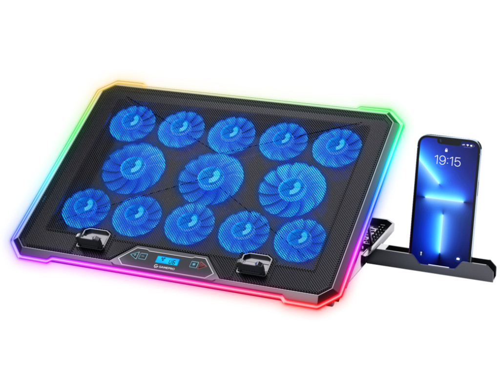 Охолоджуюча підставка Gamepro CP1090 обладнана безпрецедентною кількістю вентиляторів: 10 вентиляторів розміром 60 х 60 х 15 мм, які працюють на швидкості 2550 об/хв, та 3 вентилятори розміром 80 х 80 х 10 мм із швидкістю 1750 об/хв. Завдяки дев'яти налаштовуваним рівням висоти, кожен користувач може знайти оптимальний кут для роботи або розваг. Десять різних режимів RGB-підсвічування створюють неповторну атмосферу, роблячи робочий або ігровий процес ще більш захоплюючим. Робоча напруга всього 5V, що робить цю підставку енергоефективною та економічною. Два USB-роз'єми дозволяють підключати додаткові пристрої, а вбудований тримач для смартфона дає змогу тримати гаджет прямо перед собою для зручного доступу. CP1090 оснащена LCD-дисплеєм, який відображає поточний рівень швидкості вентиляторів і дозволяє легко керувати параметрами через інтуїтивно зрозумілий інтерфейс. Матеріали, використані у створенні підставки, забезпечують надійність і довговічність: залізна сітка та високоякісний АБС-пластик гарантують тривалий термін служби. Завдяки цим характеристикам, CP1090 — це не просто гаджет, а надійний помічник у створенні комфортного та продуктивного робочого середовища. |