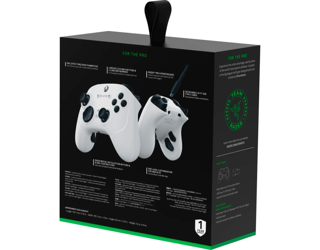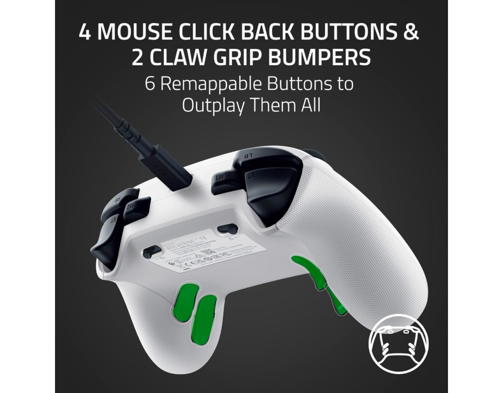 Для професіоналів Отримайте перевагу, яка потрібна для домінування над суперниками, з Razer Wolverine V3 Tournament Edition - наш найсучасніший дротовий кіберспортивний геймпад. Геймпад, офіційно ліцензований Xbox, дає змогу професійно грати на Xbox і ПК, забезпечуючи швидкість, контроль і точність, які приведуть вас до справжньої ігрової слави. 4 пелюстки з клацанням, як на миші, і 2 бампери для кігтьового хвата 6 перепризначуваних кнопок, щоб переграти всіх. Насолоджуйтеся такою ж надчутливою реакцією, як і в наших найкращих ігрових мишах, завдяки чотирьом пелюсткам, вбудованим в ергономічні прогумовані рукоятки геймпада та доповненим двома бамперами для кігтьового хвата, що забезпечують ще більший контроль. Razer Pro HyperTrigger Миттєва реакція завдяки блискавичним тригерам, як на миші. Налаштуйте тригери на миттєве спрацювання без затримок або для точного аналогового керування. Повністю пориньте у гру та відчуйте кожне натискання на тригер завдяки вбудованій тактильній вібрації. Високоточні стіки під великі пальці з датчиками Холла Точність без зсувів із налаштовуваною чутливістю. Аналогові стіки під великі пальці не тільки точніші за традиційні моделі, але й плавніші, легші й довговічніші завдяки антифрикційним кільцям і високоякісним матеріалам. Механіко-тактильні кнопки дій та 8-позиційна хрестовина Razer Надшвидкі спрацювання з тактильним відгуком. Поєднання швидкості мікроперемикачів з комфортом пружної гумової мембрани дозволяє змагатися з найшвидшим введенням, забезпечуючи при цьому таке ж зручне натискання. Кастомізація професійного рівня для Xbox і ПК За допомогою програми Razer Controller. Налаштовуйте чутливість стіків для великих пальців та створюйте індивідуальне розташування кнопок за допомогою нашого спеціального додатку. Збережіть персональний профіль і будьте готові до будь-яких змагань. Режим турніру для ПК Частота опитування 1000 Гц для змагальної гри на ПК. При дротовому підключенні на ПК можна ввімкнути спеціальний турнірний режим з частотою опитування 1000 Гц за допомогою застосунку Razer Controller або комбінації клавіш геймпада. 3-метровий кабель USB Type-C, що від'єднується Зручне рішення для турнірів. Будьте готові грати на Xbox або ПК за допомогою портативної конструкції, виготовленої за технологією plug-and-play. Просто під'єднайте і насолоджуйтеся дротовим під'єднанням із нульовою затримкою, вкрай важливою для змагальної гри. |