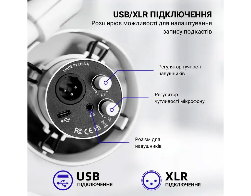 Внизу мікрофона є два регулятори гучності мікрофона та навушників. Перевага того, що елементи керування розташовані знизу, полягає в тому, що вони не заважатимуть вам при закріпленні мікрофона на штанзі. Найвідоміший факт полягає в тому, що рівень власного шуму стане набагато менш помітним при використанні збалансованого гнізда XLR. Тому що будь-які перешкоди, що виникають на шляху проходження сигналу, будуть зведені нанівець. Якщо вас в першу чергу непокоїть загальний рівень шуму, то роз'єм XLR і динамічний капсуль - це найкраща комбінація, яка дозволить вам не турбуватися про це. Але переконайтеся, що ви вибрали пристойний аудіокабель XLR для підключення, оскільки він не входить до комплекту постачання.