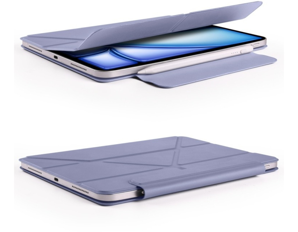 Виготовлений із штучної шкіри з мікрофібровою підкладкою всередині та жорстким пластиковим заднім корпусом. Чохол має гладку текстуру, приємну на дотик. Магнітний замок підтримує функцію автоматичного сну/пробудження, що допомагає економити заряд батареї. Завдяки можливості скласти чохол у кілька положень, Ви зможете зручно працювати або переглядати контент. Спецільне кріплення для Apple Pencil дозволяє зберігати його безпечно. Чохол повністю закриває пристрій, захищаючи його від подряпин, а також має спеціальний виступ, що оберігає камеру від пошкоджень. |