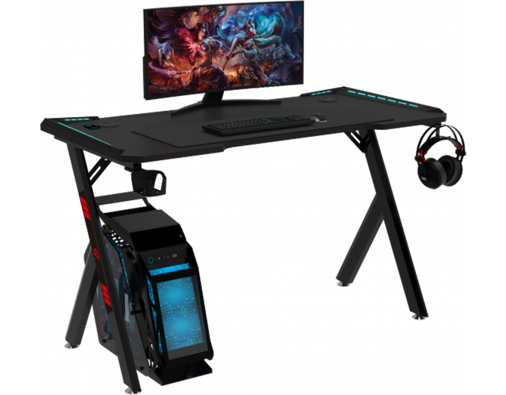 Геймерський комп'ютерний стіл GT Racer T-1249 створений, щоб задовольнити потреби найвибагливіших користувачів. Його сучасний дизайн відмінно вписується в будь-який інтер'єр, створюючи атмосферу, що сприяє зануренню в гру чи роботу. Матеріали, з яких виготовлена модель, гарантують тривалий термін служби, зберігаючи презентабельний вигляд та функціональність. Стільниця з якісного МДФ та пластику забезпечує міцність та довговічність. Така поверхня стійка до подряпин та легко очищається, що робить її ідеальним вибором для тривалої експлуатації. Товщина стільниці 15 мм забезпечує її надійність та стійкість навіть при великому навантаженні. Прямокутна форма стільниці з вигнутим переднім краєм робить посадку за столом зручнішою, забезпечуючи ергономічне положення рук, тому навантаження на шию та плечі мінімізується. Текстурована поверхня не тільки покращує тактильні відчуття, але й запобігає ковзанню предметів чи пристроїв. GT Racer T-1249 пропонує просторе робоче місце для максимальної зручності. Стільниця класичного розміру 120 см завдовжки та 60 см завширшки дозволяє з легкістю розмістити монітор, клавіатуру, мишу та інші ігрові аксесуари, а також залишає достатньо місця для комфортної роботи. Висота 73 см оптимальна для зручного положення тіла, запобігаючи навантаженню на спину. Додаткові функціональні елементи, такі як тримач для навушників та підставка під стакан, дозволяють підтримувати порядок на робочому місці та тримати все необхідне в межах досяжності. Отвір для шнурів спрощує організацію кабелів, допомагаючи уникнути безладу та створюючи акуратний зовнішній вигляд простору. По краях столу вбудовано LED-підсвічування, яке не тільки покращує візуальне сприйняття, а й полегшує роботу за комп'ютером в умовах слабкого освітлення. Воно може бути налаштовано залежно від уподобань та інтер'єру кімнати. Каркас столу виконаний із міцного металу, що забезпечує його стійкість та довговічність. Металеві ніжки оснащені фіксаторами, завдяки чому стіл залишається стабільним на різних поверхнях. Така конструкція витримує інтенсивне використання і навіть через деякий час збереже свої первісні характеристики. |